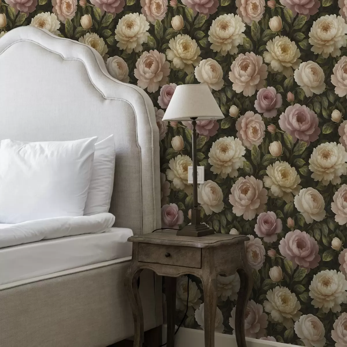 Tapeta Романтични божури на тамној ботаничкој позадини бр. a00893
