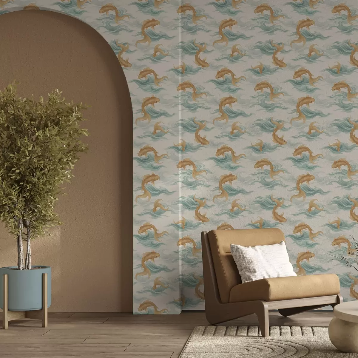 Tapeta Ћилибарна кои риба плива међу меким тиркизним таласима бр. a00894