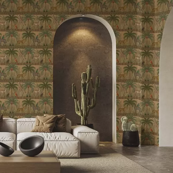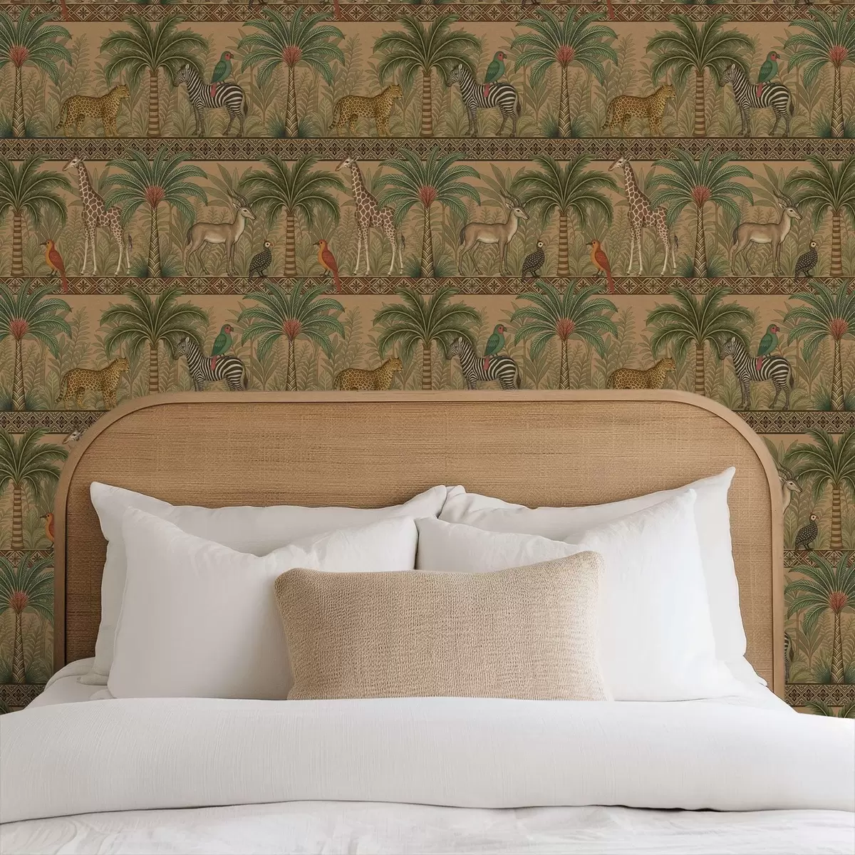 Tapeta Декоративне животиње саване између палми и ивица бр. a00898