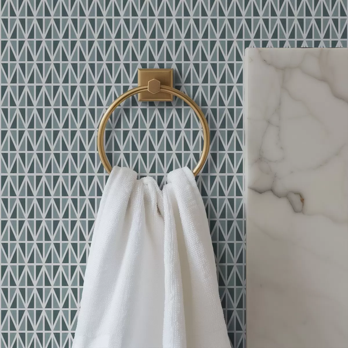 Tapeta Фина бела дијамантска решетка преко пригушене тиркизне боје бр. a00903