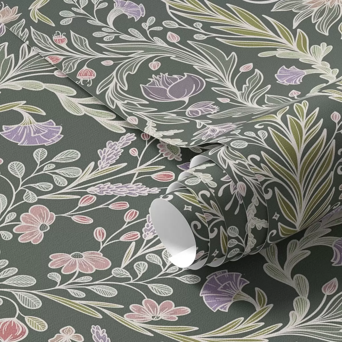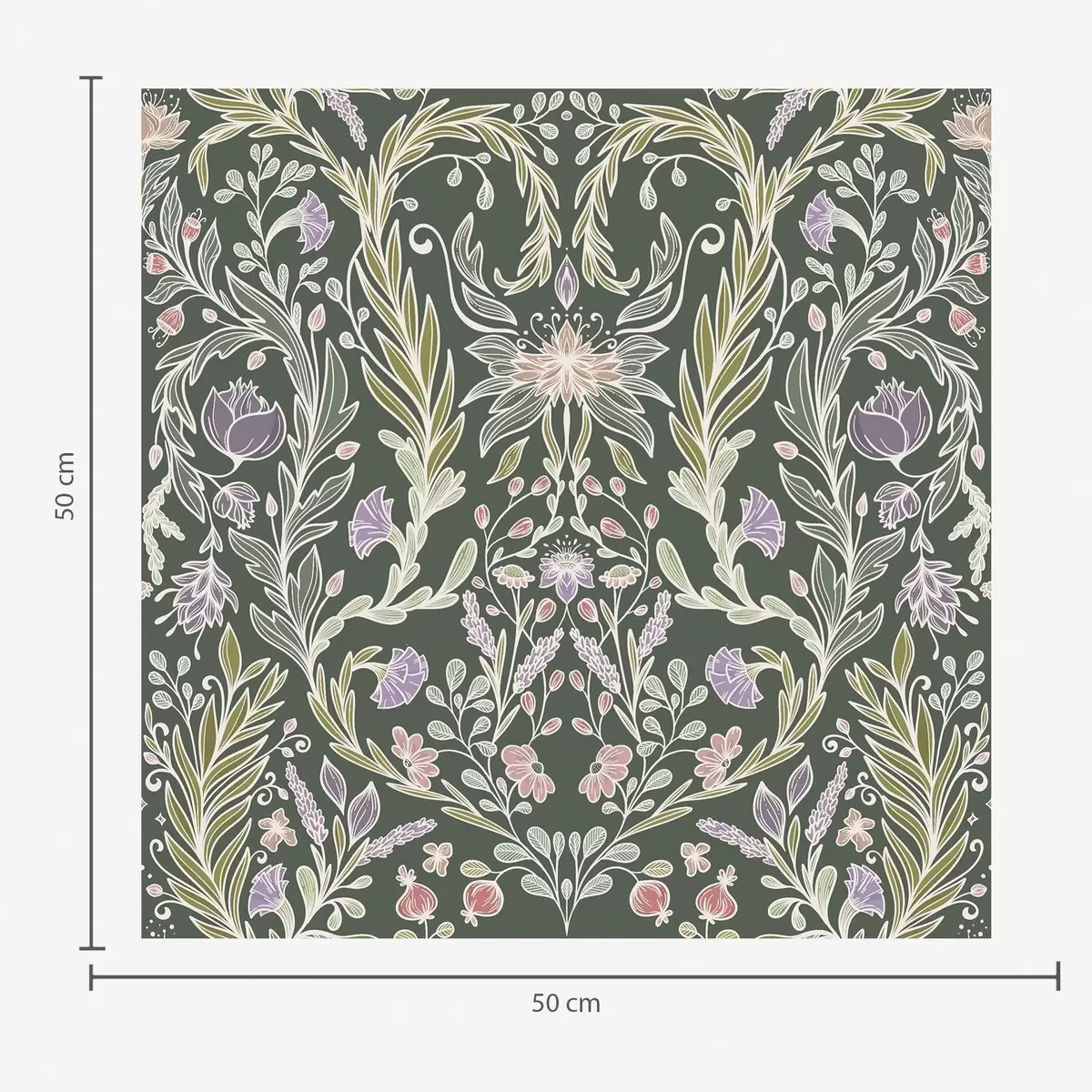 Tapeta Симетрични цветни орнамент на тамнозеленој позадини бр. a00928