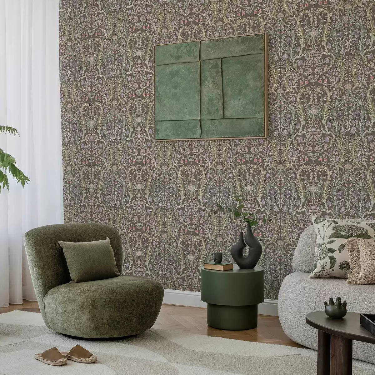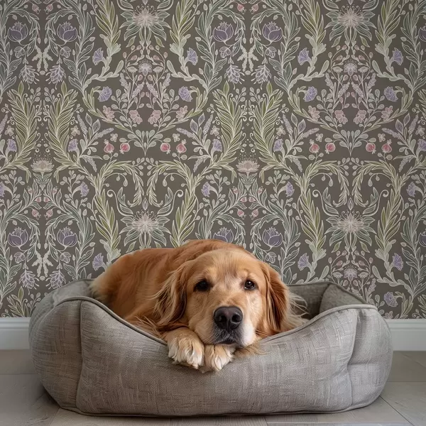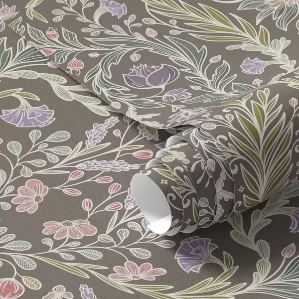 Tapeta Симетрични цветови и листови на смеђе-сивој позадини бр. a00928v2