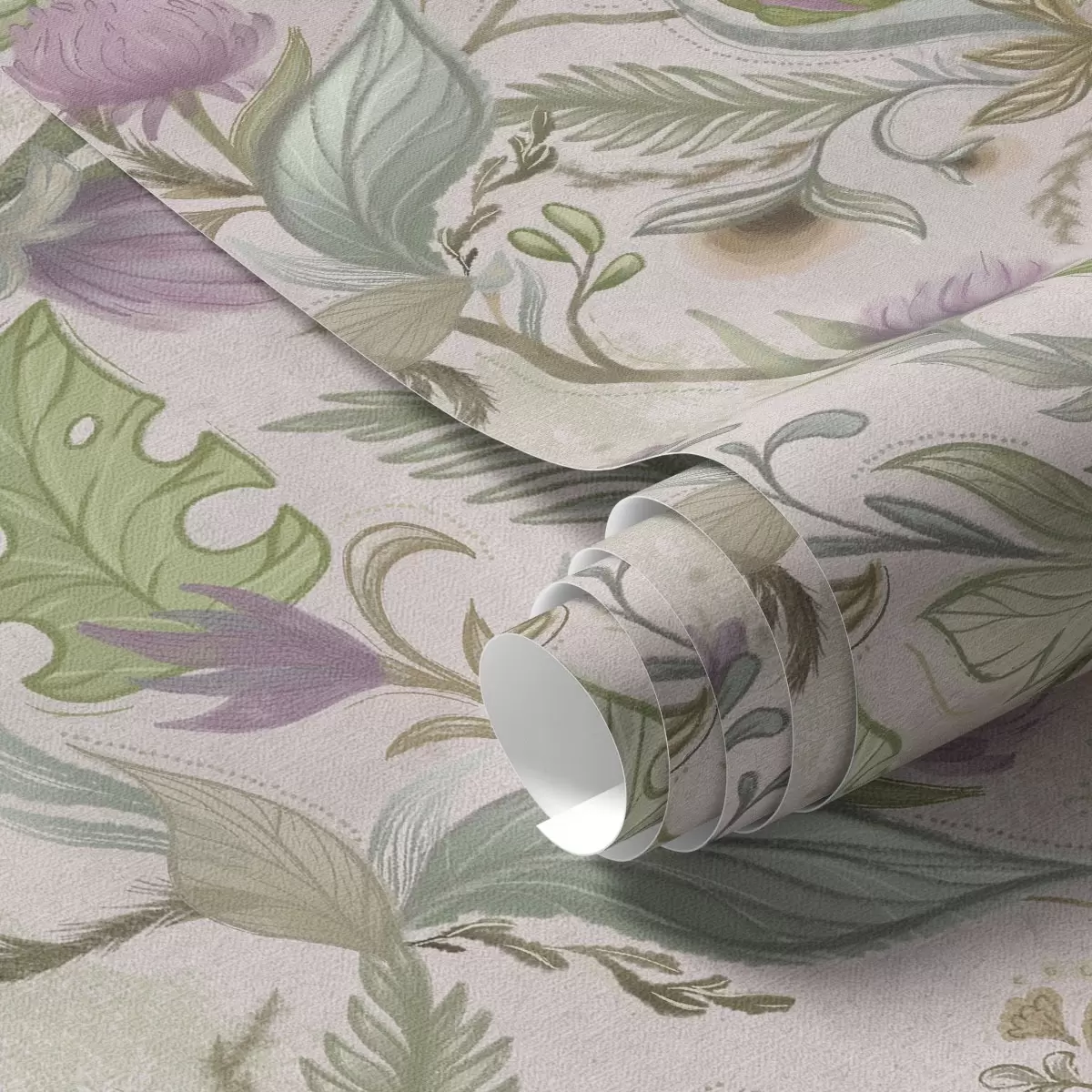 Tapeta Јорговано дивље цвеће и лишће на прашкастој позадини бр. a00930v3