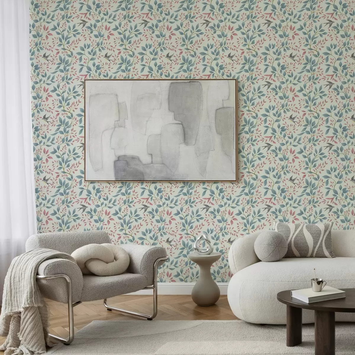 Tapeta Прозрачне гране и птице на светлој позадини менте бр. a00933v1