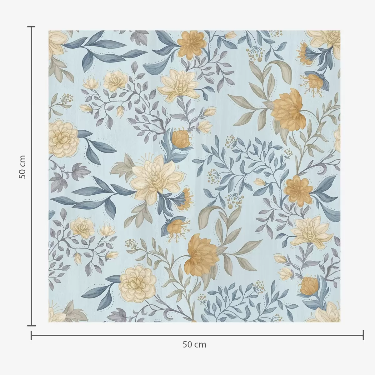 Tapeta Жуто и плаво цвеће са листовима на небеско плавој позадини бр. a00934
