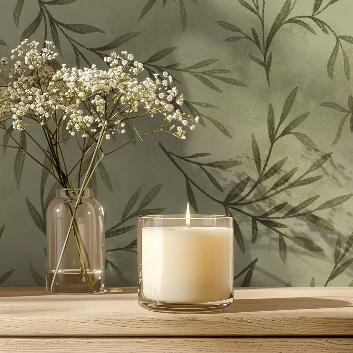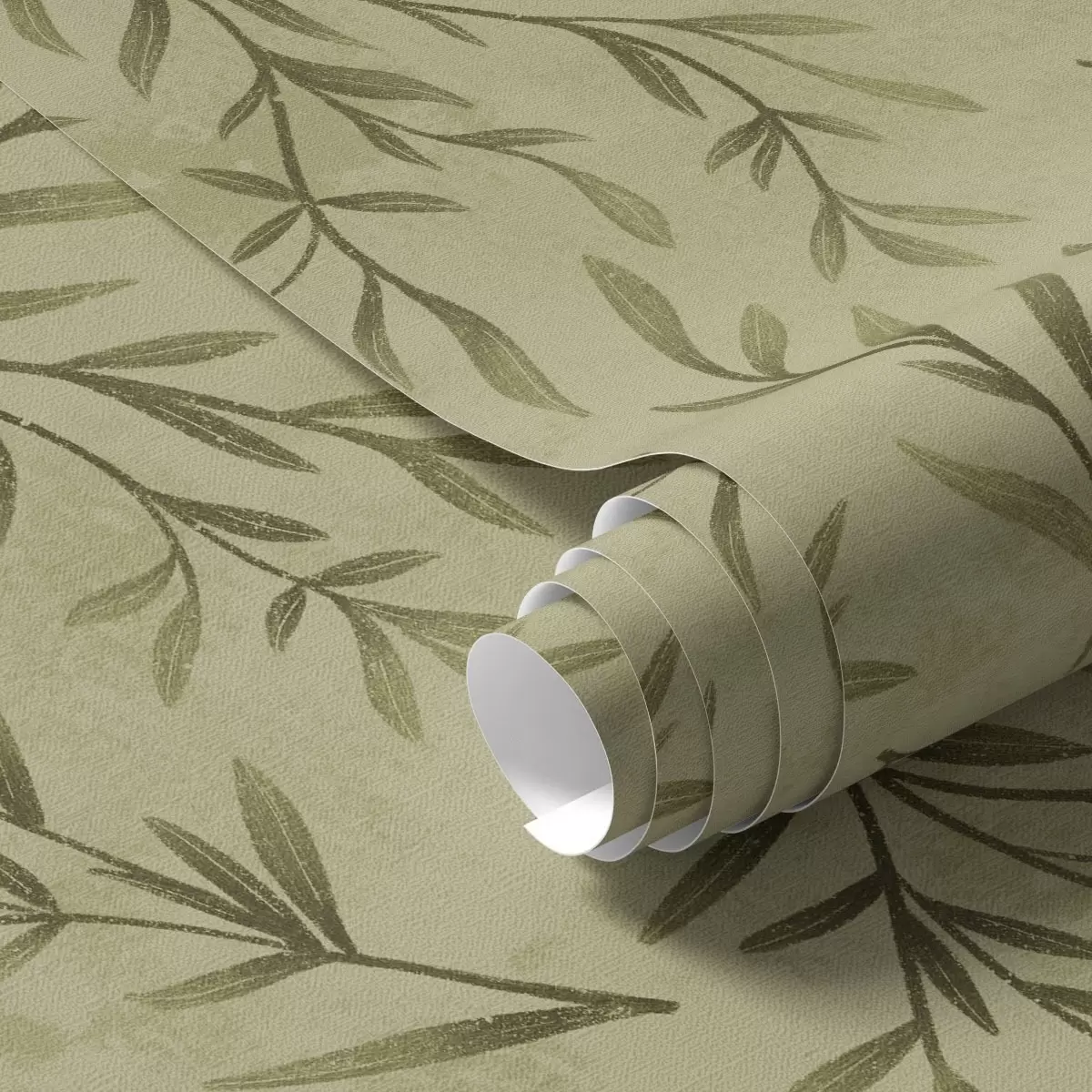 Tapeta Гранчице маслине на пригушеном жуто-зеленом текстурираном тлу бр. a00936
