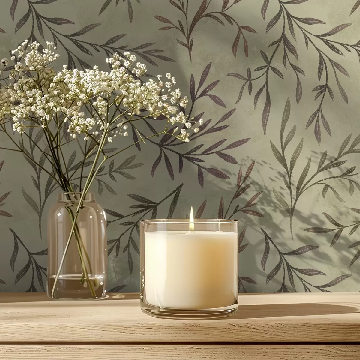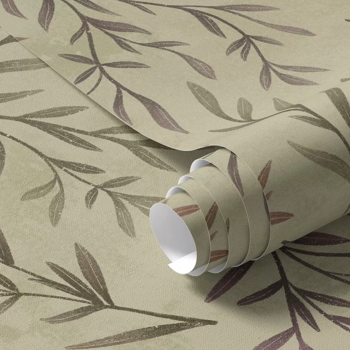 Tapeta Јоргована и зелена гранчица са лишћем на топлој позадини бр. a00936v4