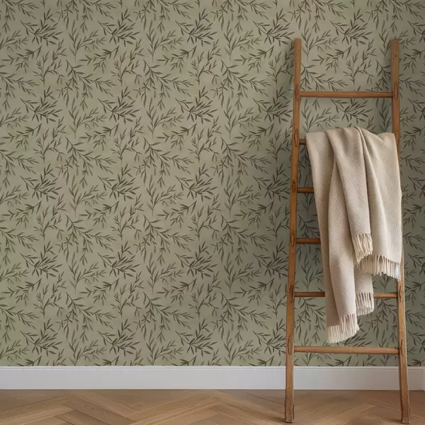 Tapeta Јоргована и зелена гранчица са лишћем на топлој позадини бр. a00936v4