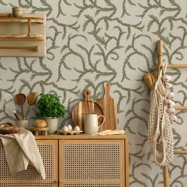 Tapeta Меке зелене коврџе четинара на светлој позадини бр. a00938