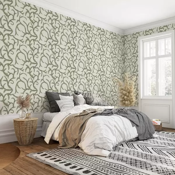 Tapeta Меке зелене коврџе четинара на светлој позадини бр. a00938