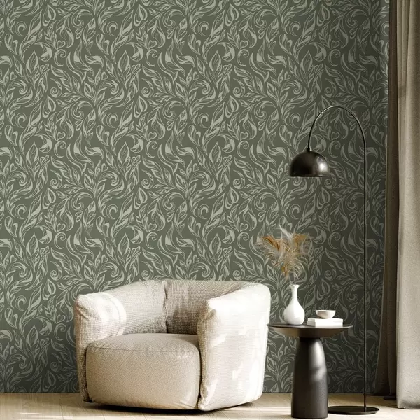 Tapeta Крем лиснати украс на зеленкасто-сивој позадини бр. a00940v2