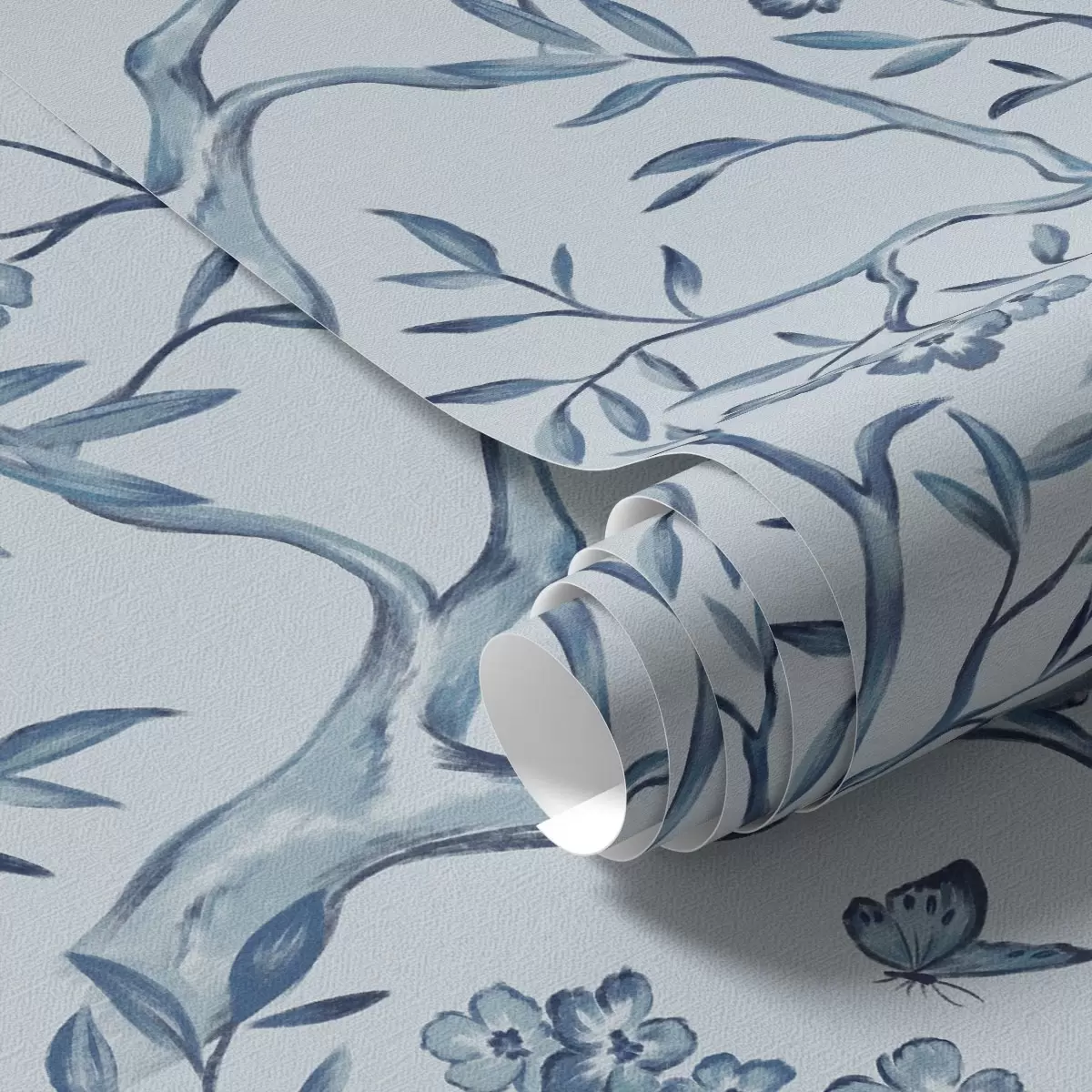 Tapeta Акварел плаве гране са цвећем и лептирима на светлој позадини бр. a00951
