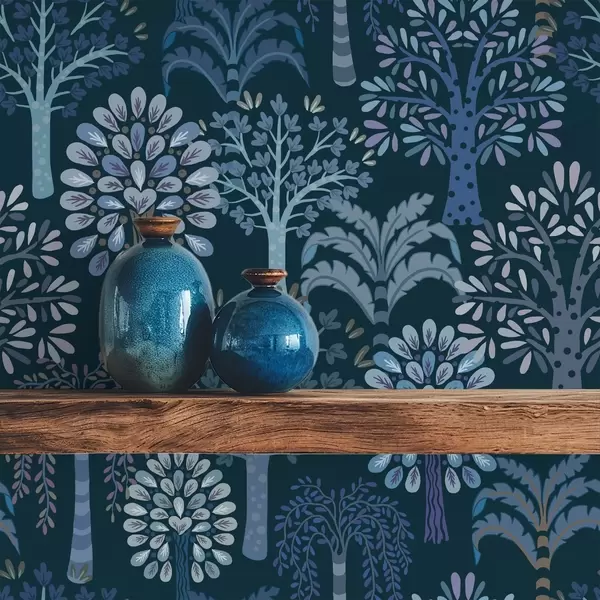 Tapeta Ноћна шума са украсним дрвећем у плавим нијансама бр. a00960v2