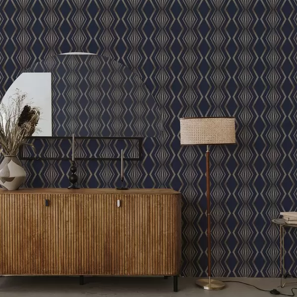 Tapeta Тамноплава позадина са геометријским дијамантима и цик-цак линијама бр. a00974v2