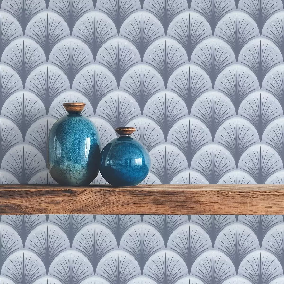 Tapeta Плави лепезасти лукови са зрацима на светлоплавој позадини бр. a00978v1