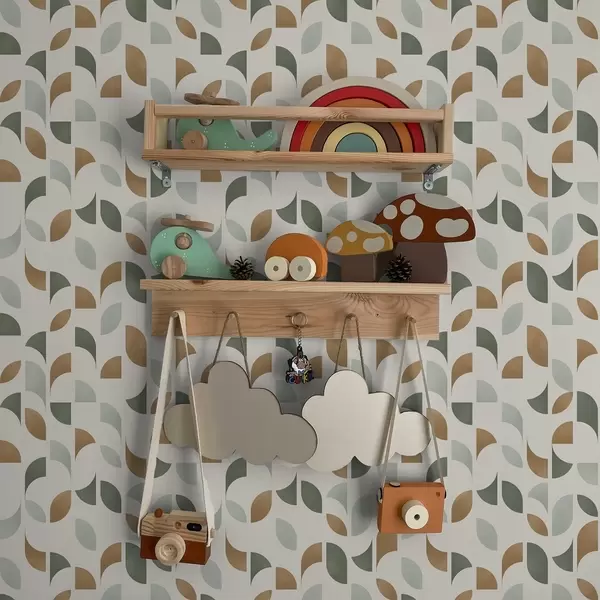 Tapeta Апстрактни полукругови и листови у зеленој и теракотној боји бр. a00985
