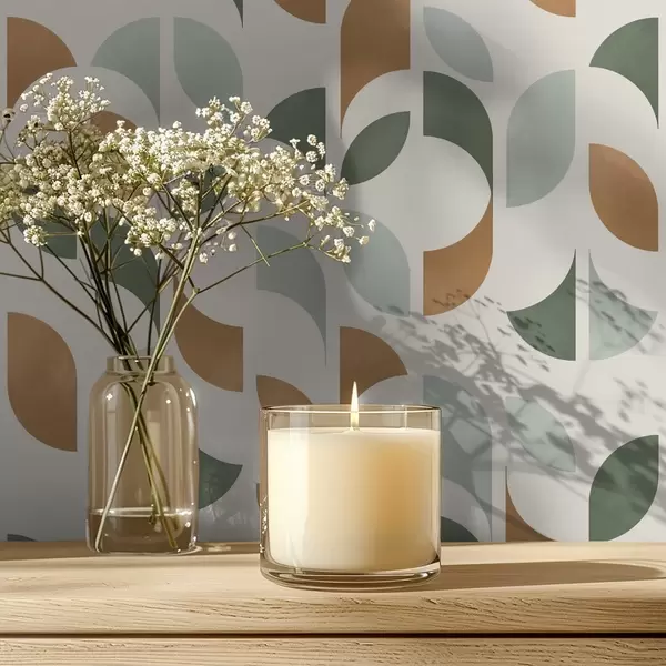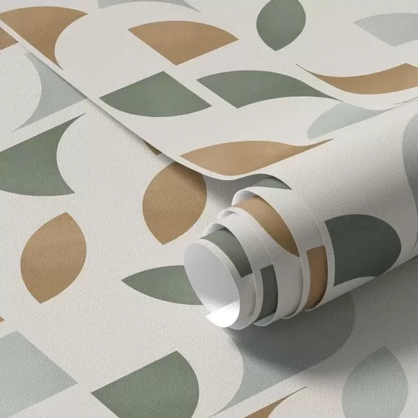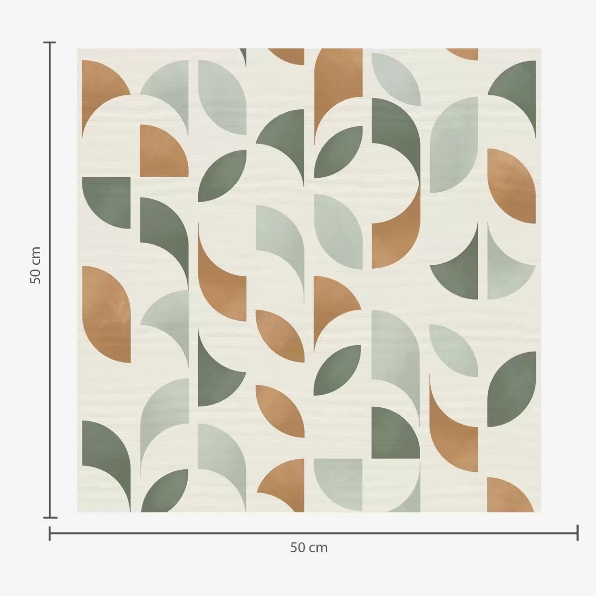Tapeta Вертикални стубови од полукругова и листова, зелено-теракота бр. a00986