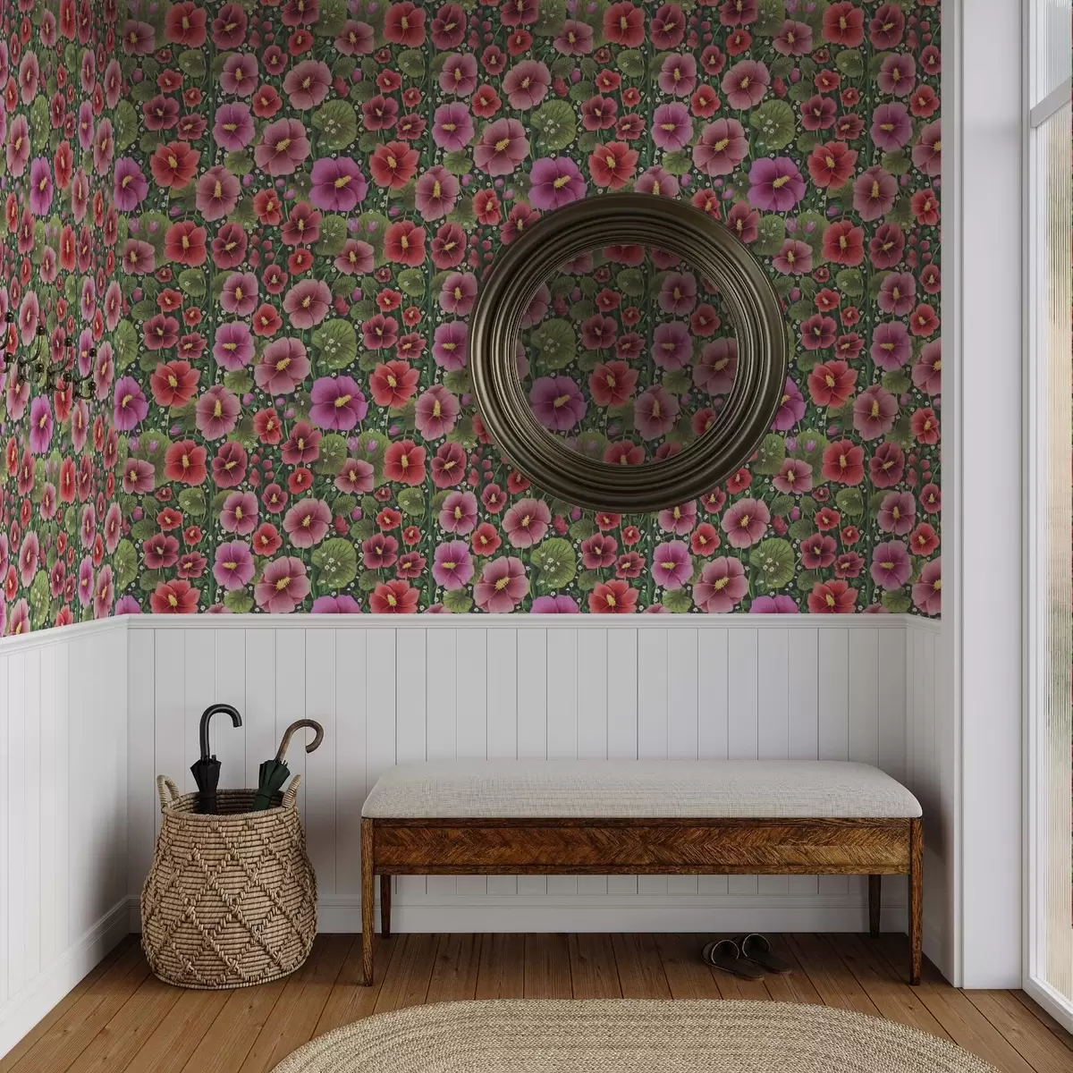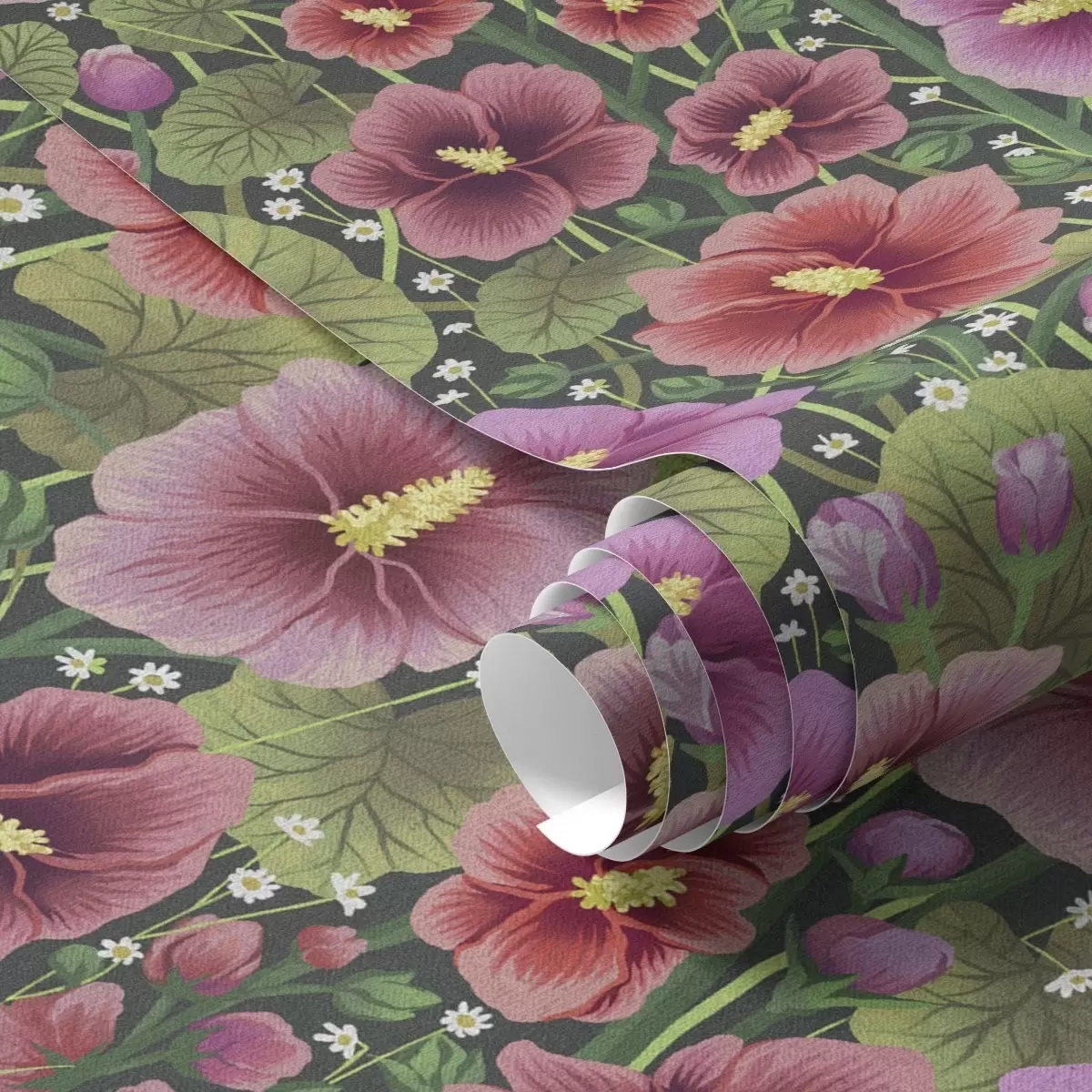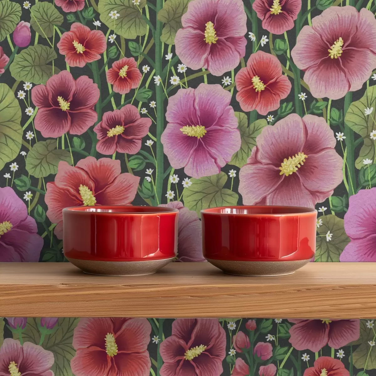 Tapeta Светли цветови хибискуса и зеленило на тамној позадини бр. a00993v2