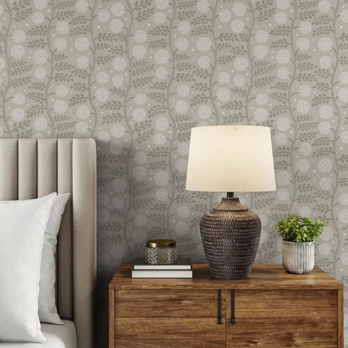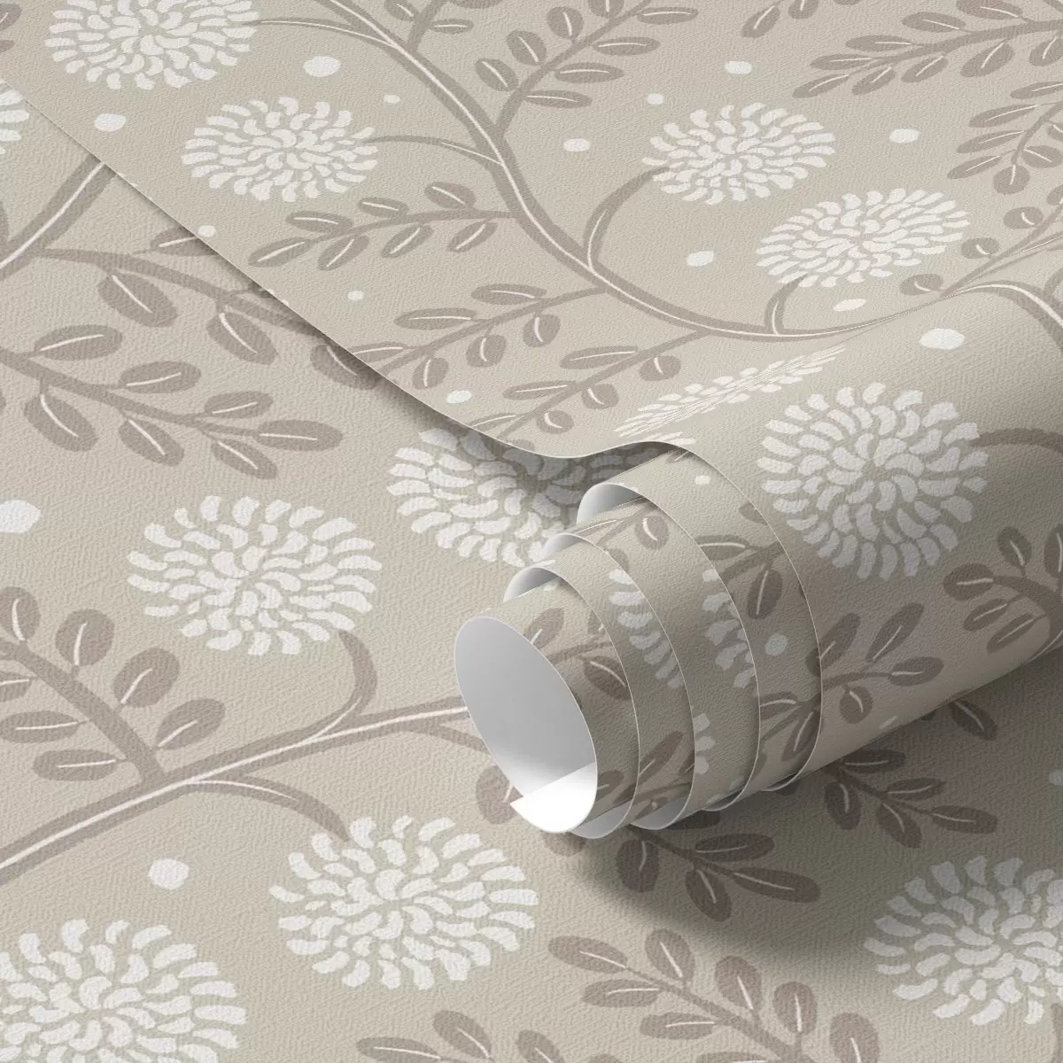 Tapeta Беж стабљике са белим пахуљастим цветовима и меким тачкама бр. a00997