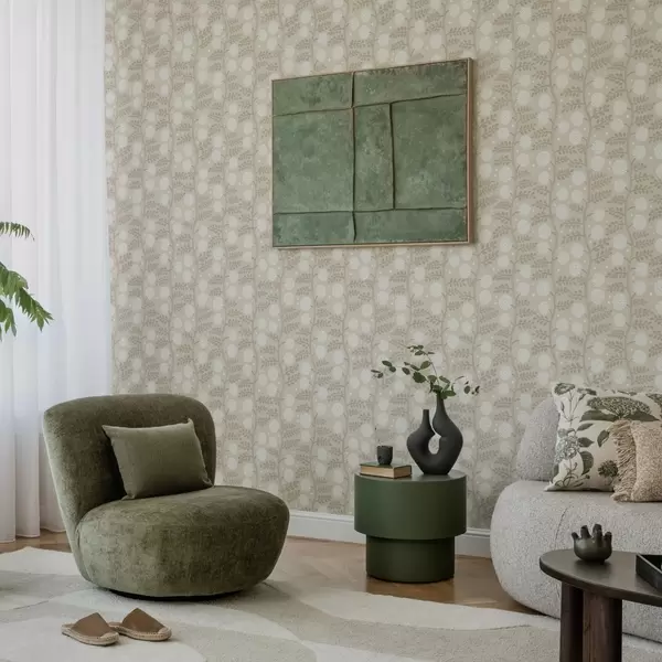 Tapeta Беж стабљике са белим пахуљастим цветовима и меким тачкама бр. a00997