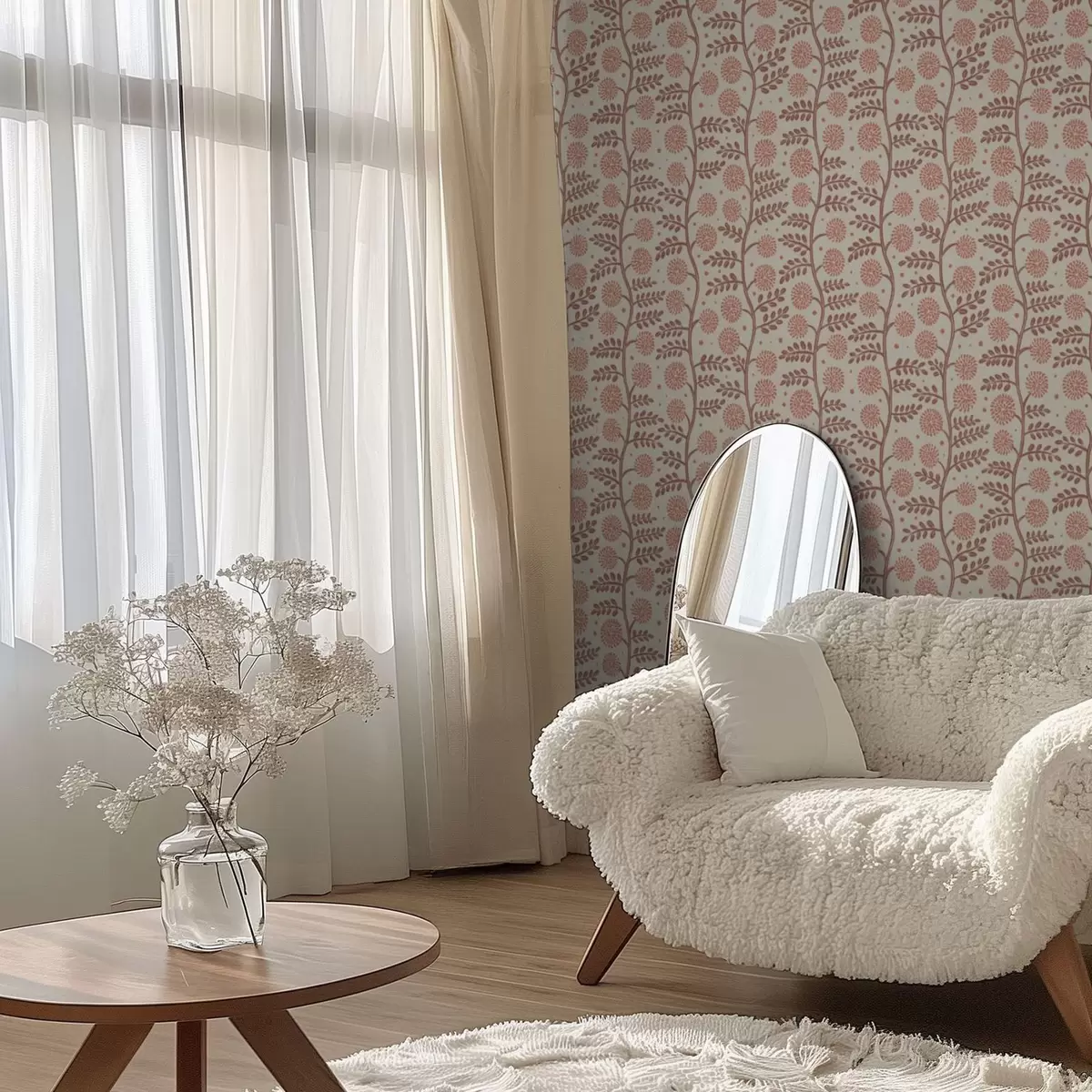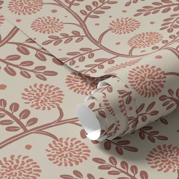 Tapeta Теракотне стабљике са коралним пахуљастим цветовима на кремастој позадини бр. a00997v1