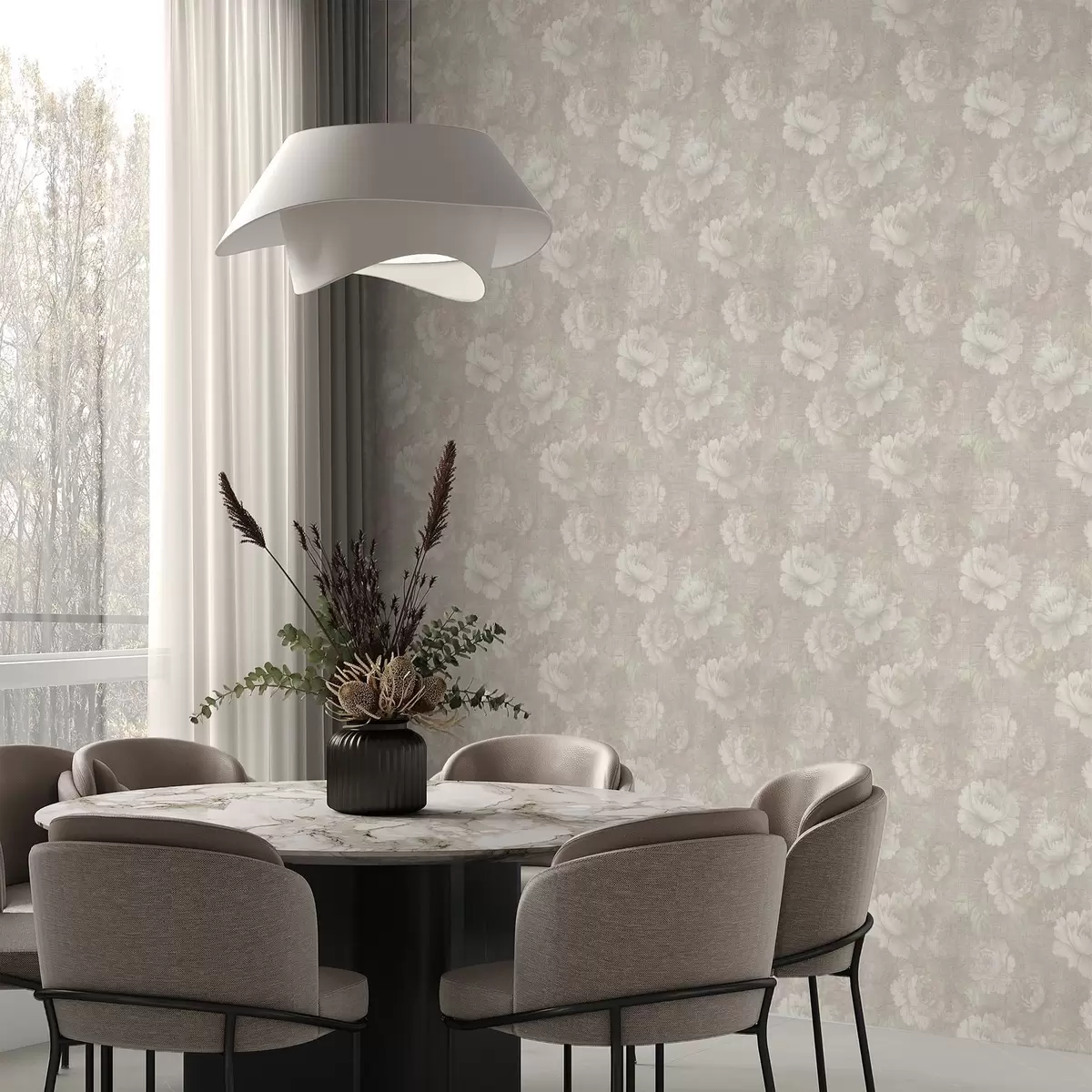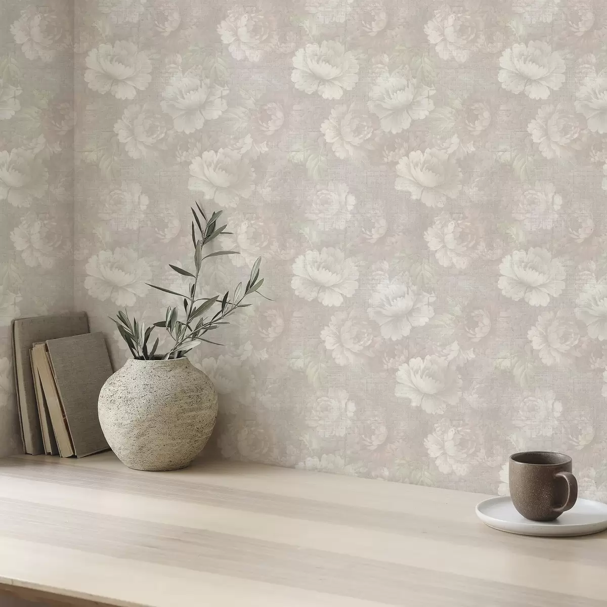 Tapeta Избледели божури на текстури платна у мекој беж палети бр. a01018