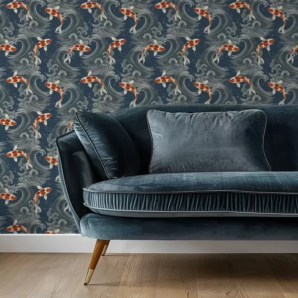 Tapeta Кои рибе пливају међу драматичним океанским таласима бр. a01019