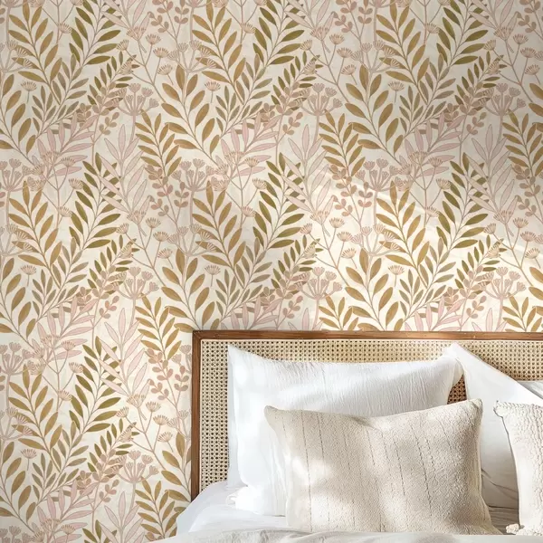 Tapeta Светли ботанички узорак са нежним ружичастим и овсеним листовима бр. a01020v1