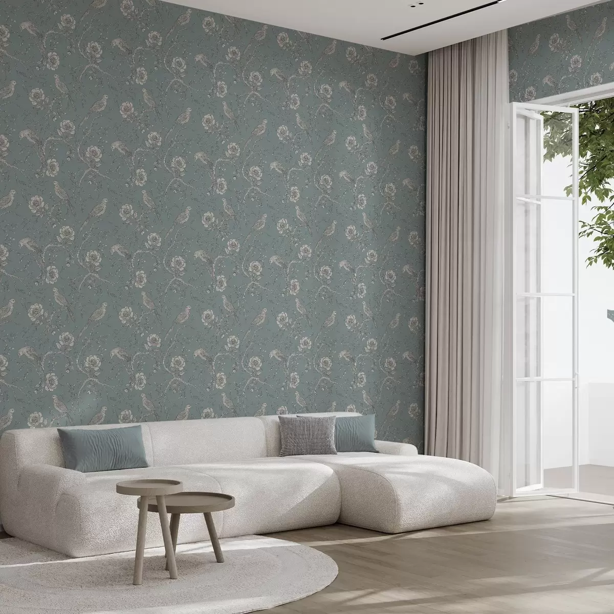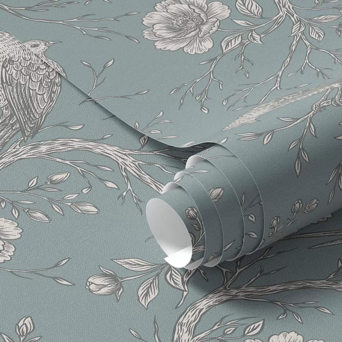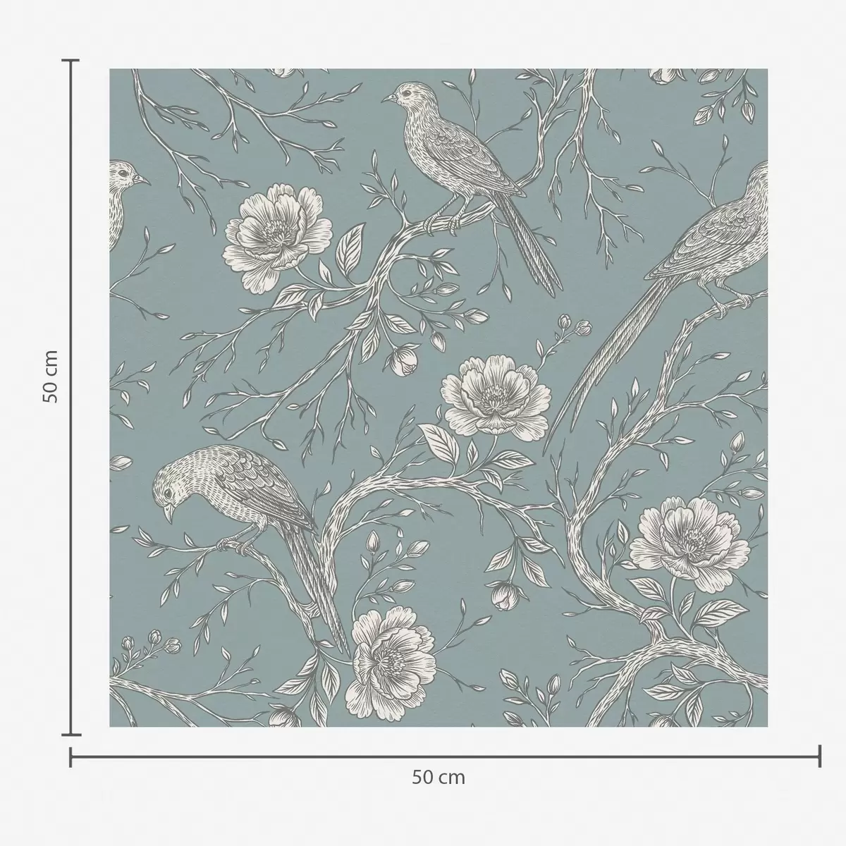 Tapeta Контурно нацртане птице на гранама, пригушена плава позадина бр. a01022
