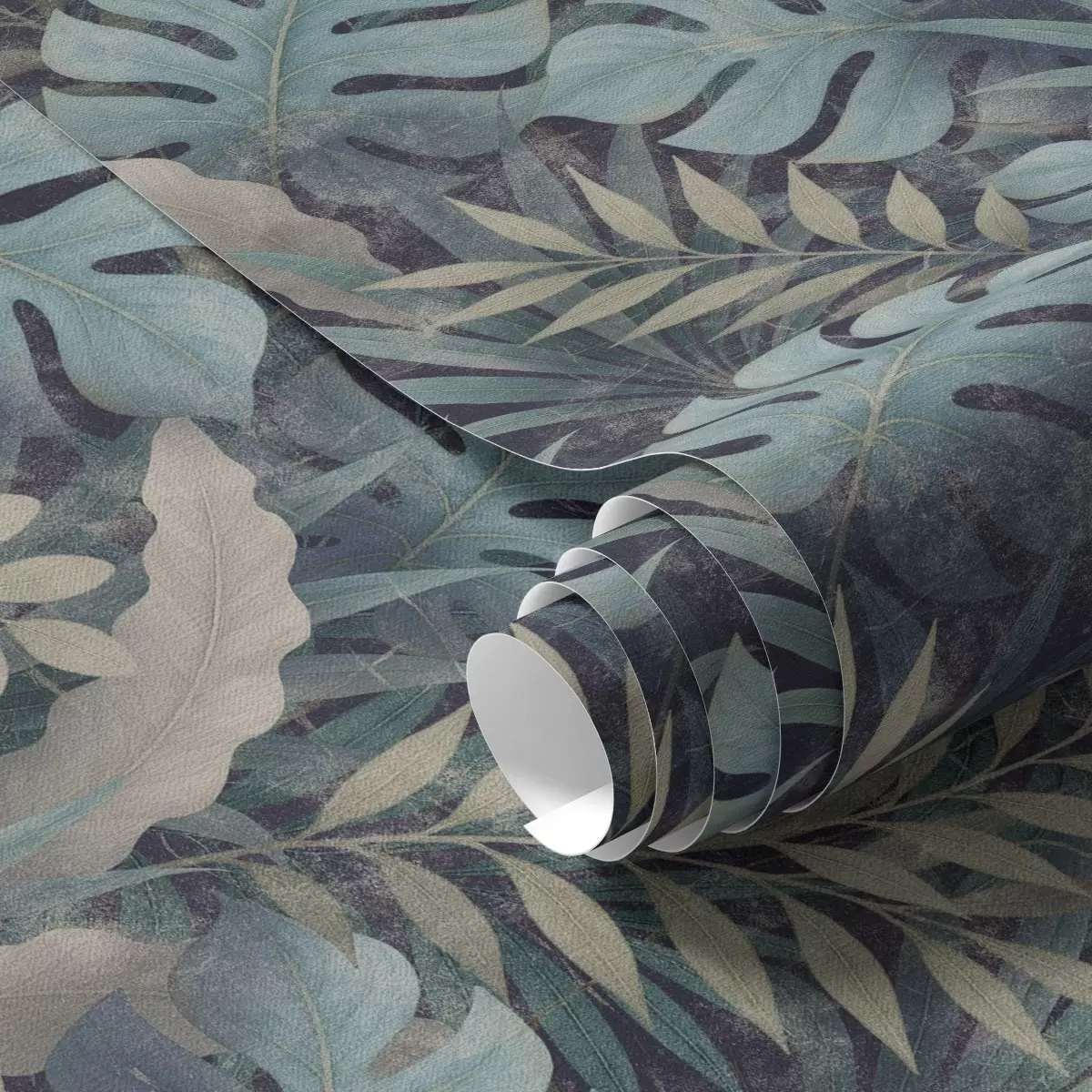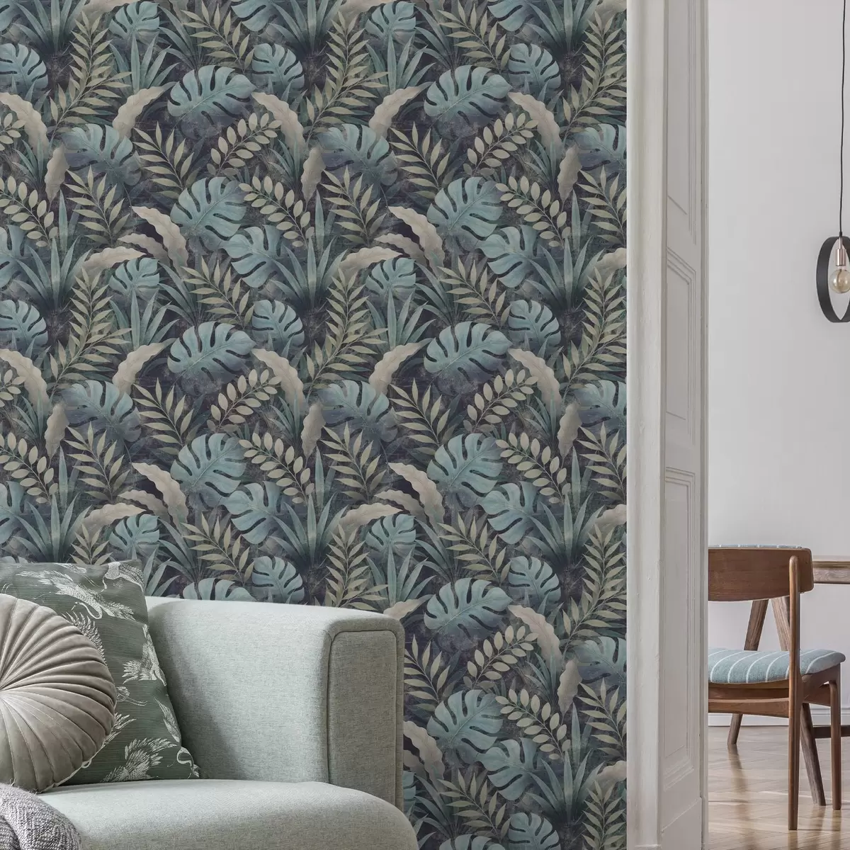 Tapeta Тропско лишће у хладним плаво-зеленим тоновима бр. a01035