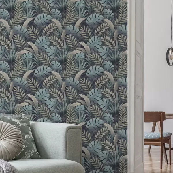 Tapeta Тропско лишће у хладним плаво-зеленим тоновима бр. a01035