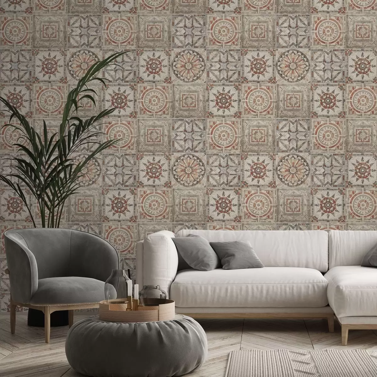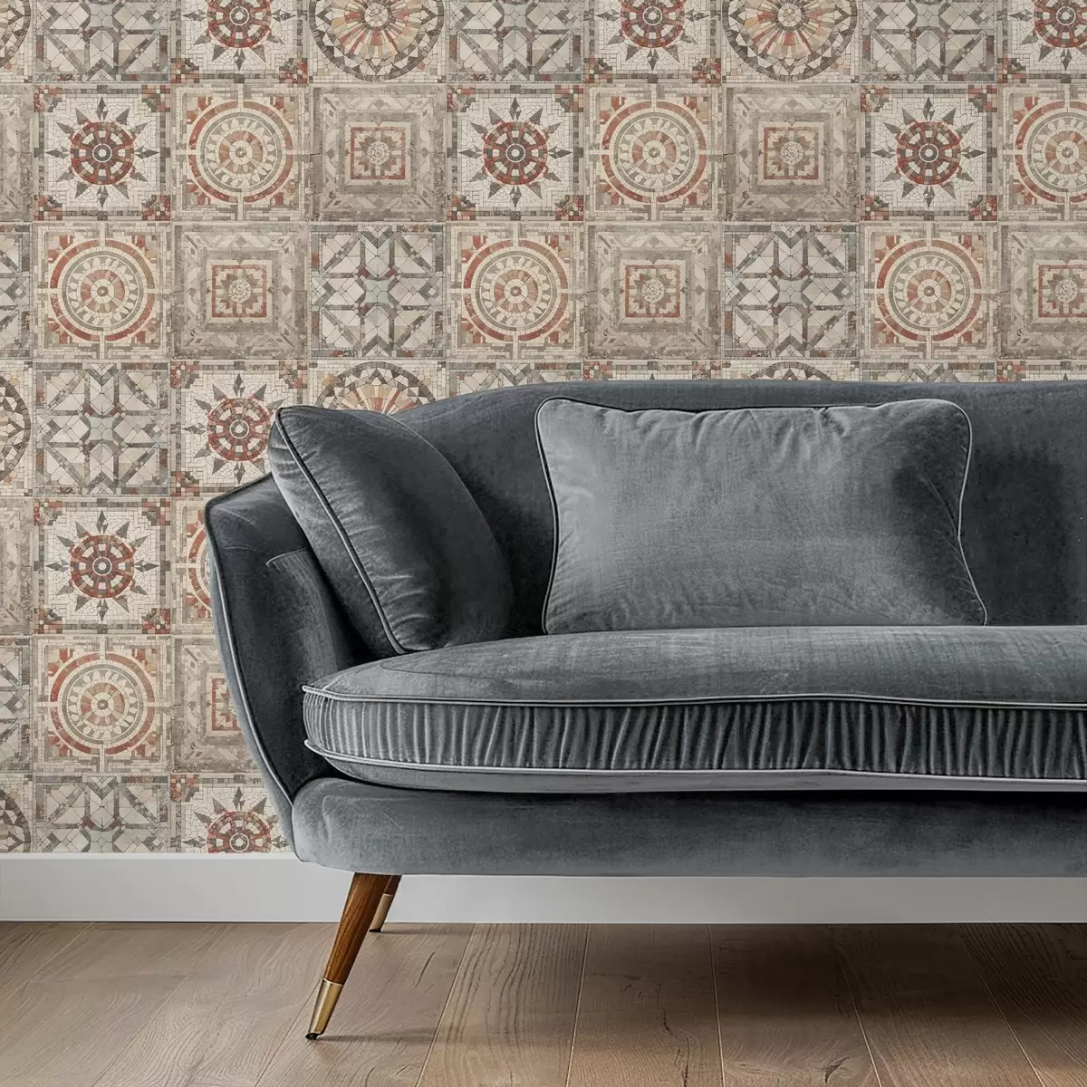 Tapeta Стари камени мозаични медаљони са излизаним детаљима бр. a01042