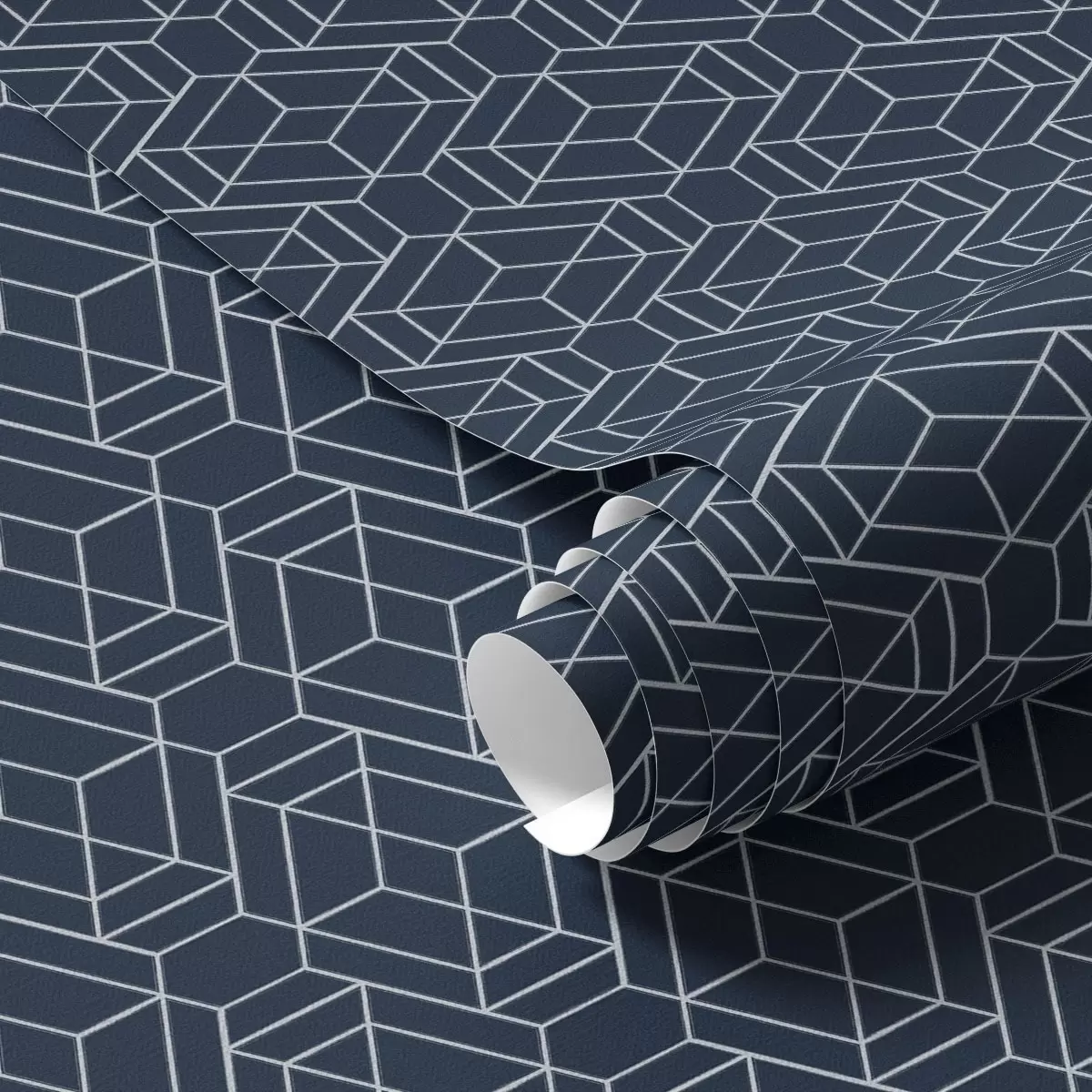 Tapeta Тамноплава геометријска решетка коцки бр. a01066v1
