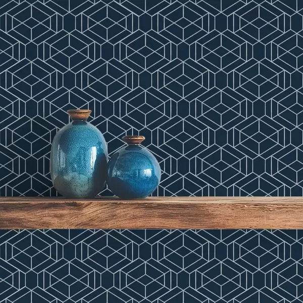 Tapeta Тамноплава геометријска решетка коцки бр. a01066v1