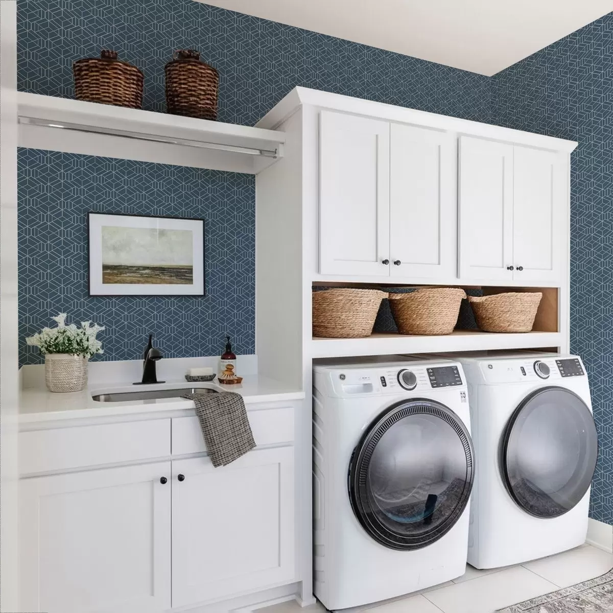 Tapeta Плава позадина са белим линеарним коцкама у мрежи бр. a01067v1