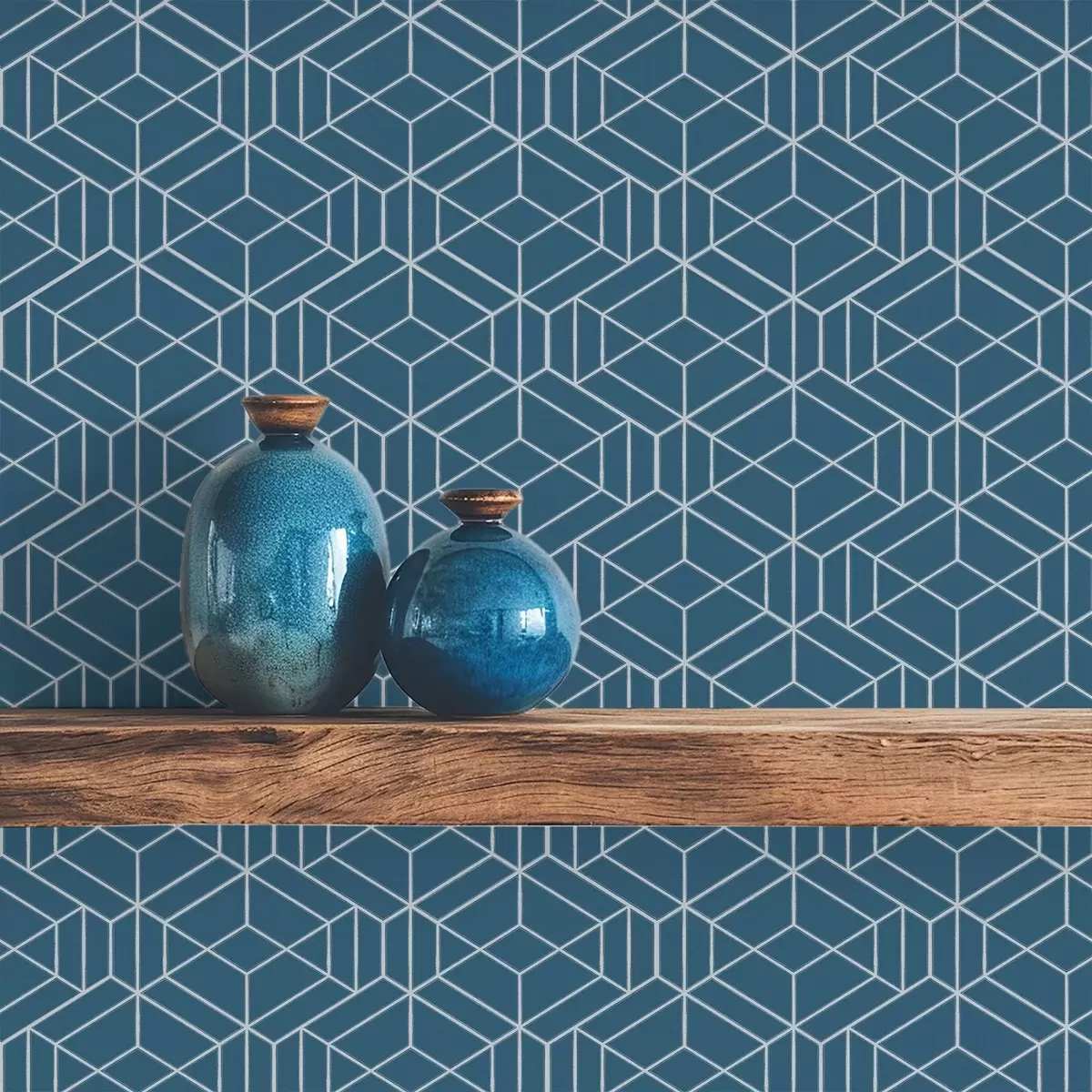 Tapeta Плава позадина са белим линеарним коцкама у мрежи бр. a01067v1