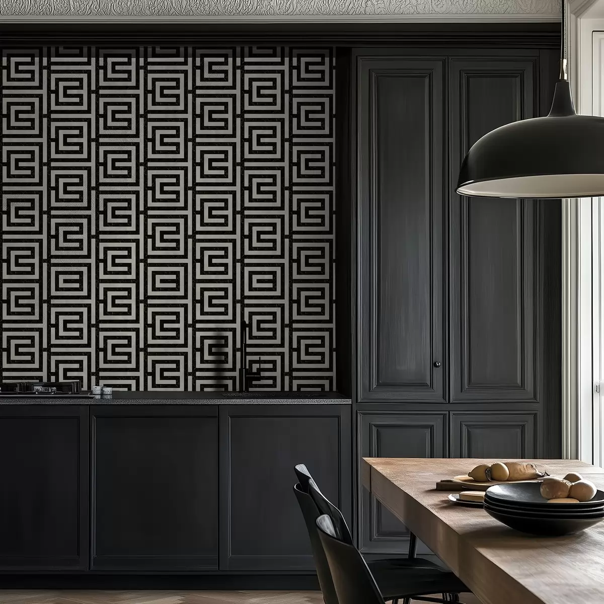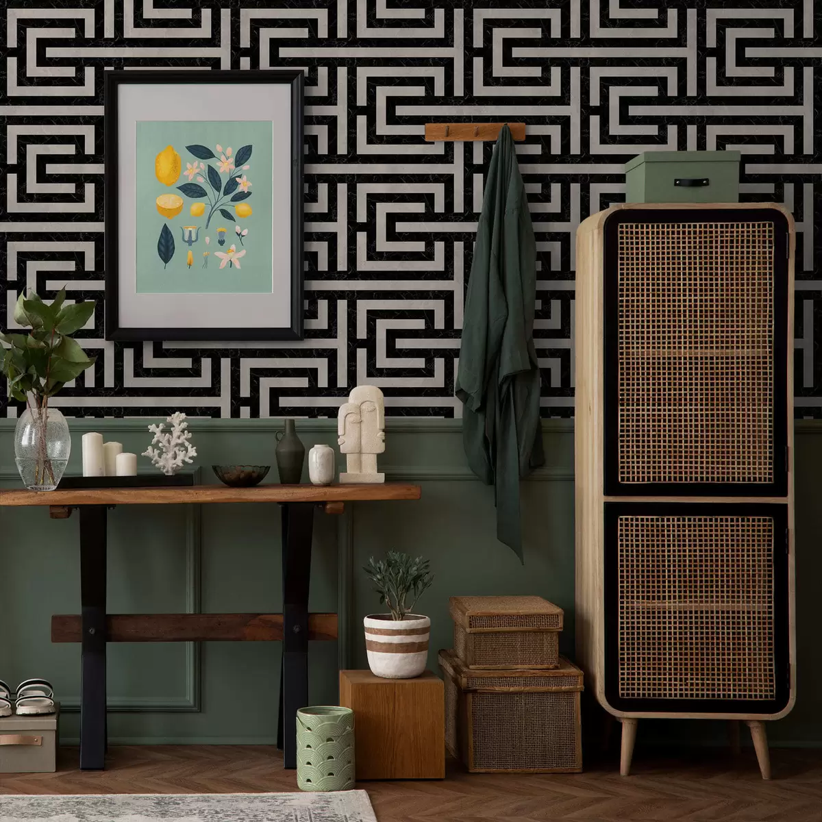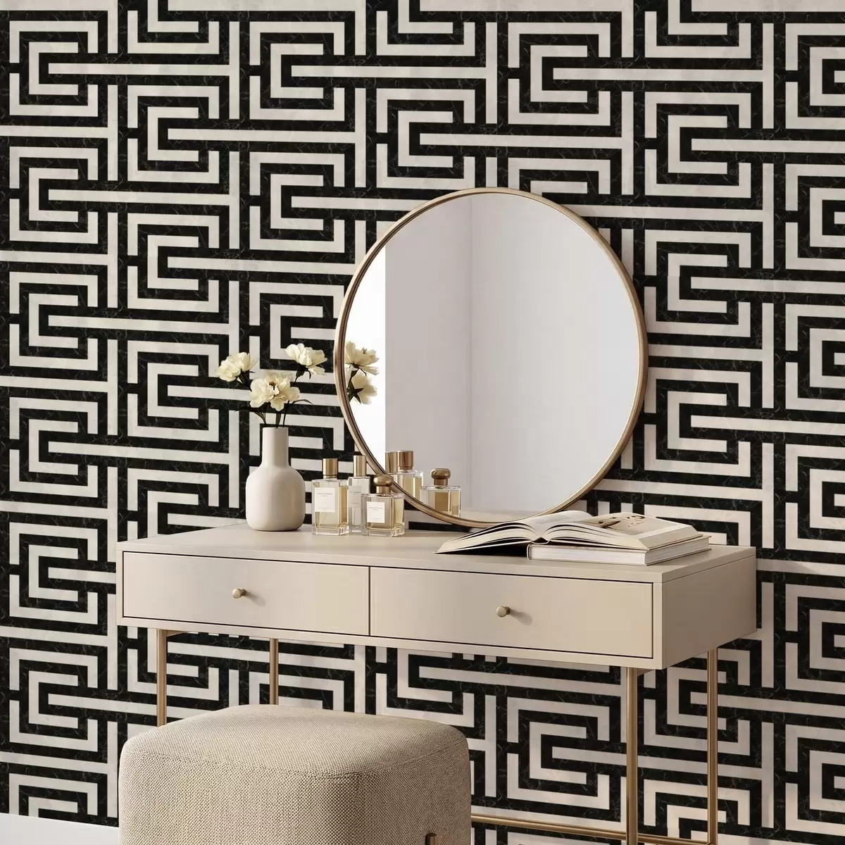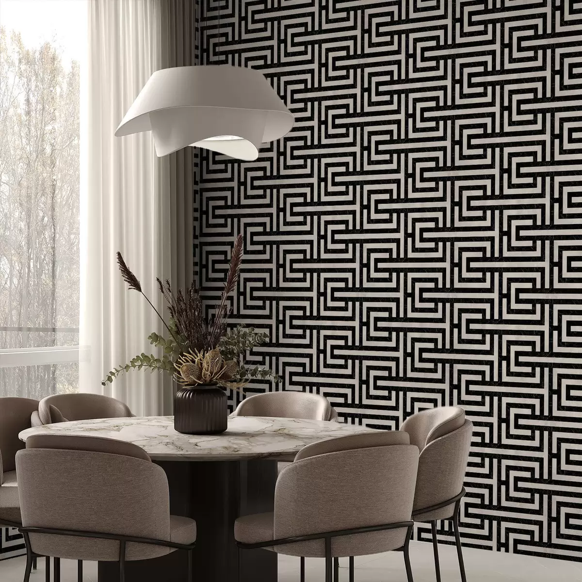 Tapeta Црно-бели геометријски лавиринтски узорак бр. a01073