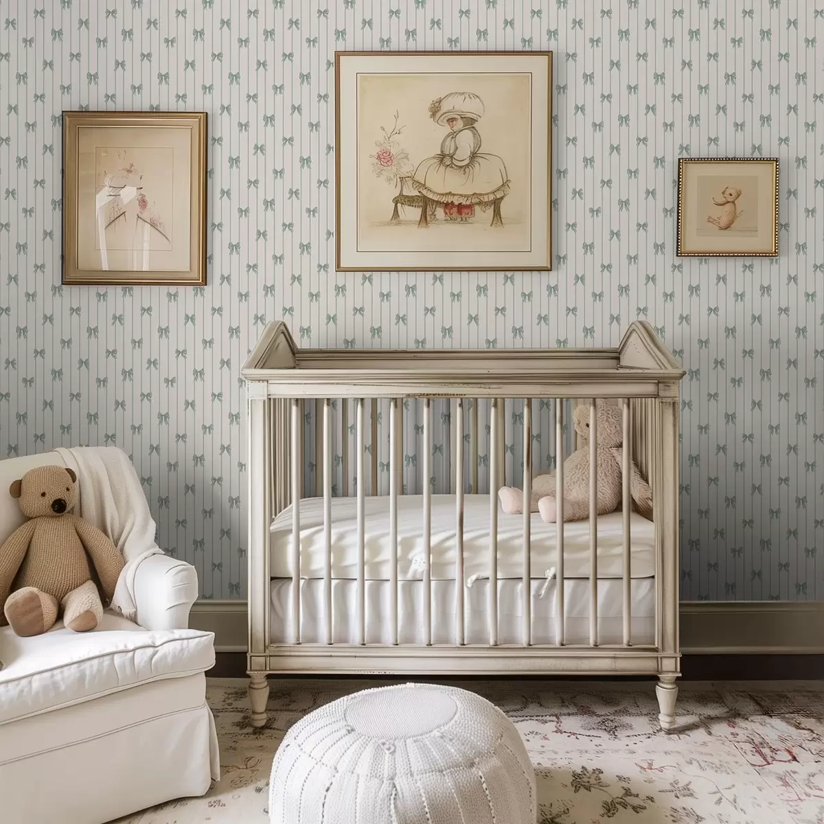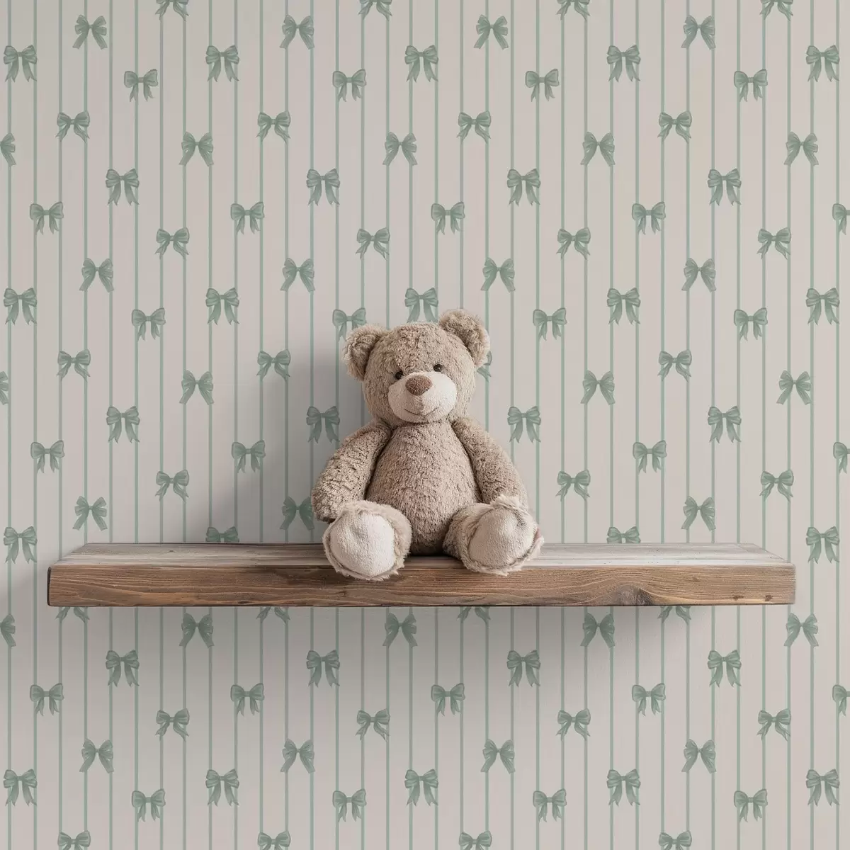 Tapeta Мале зелене машне у пругама на беж позадини бр. a01076v2