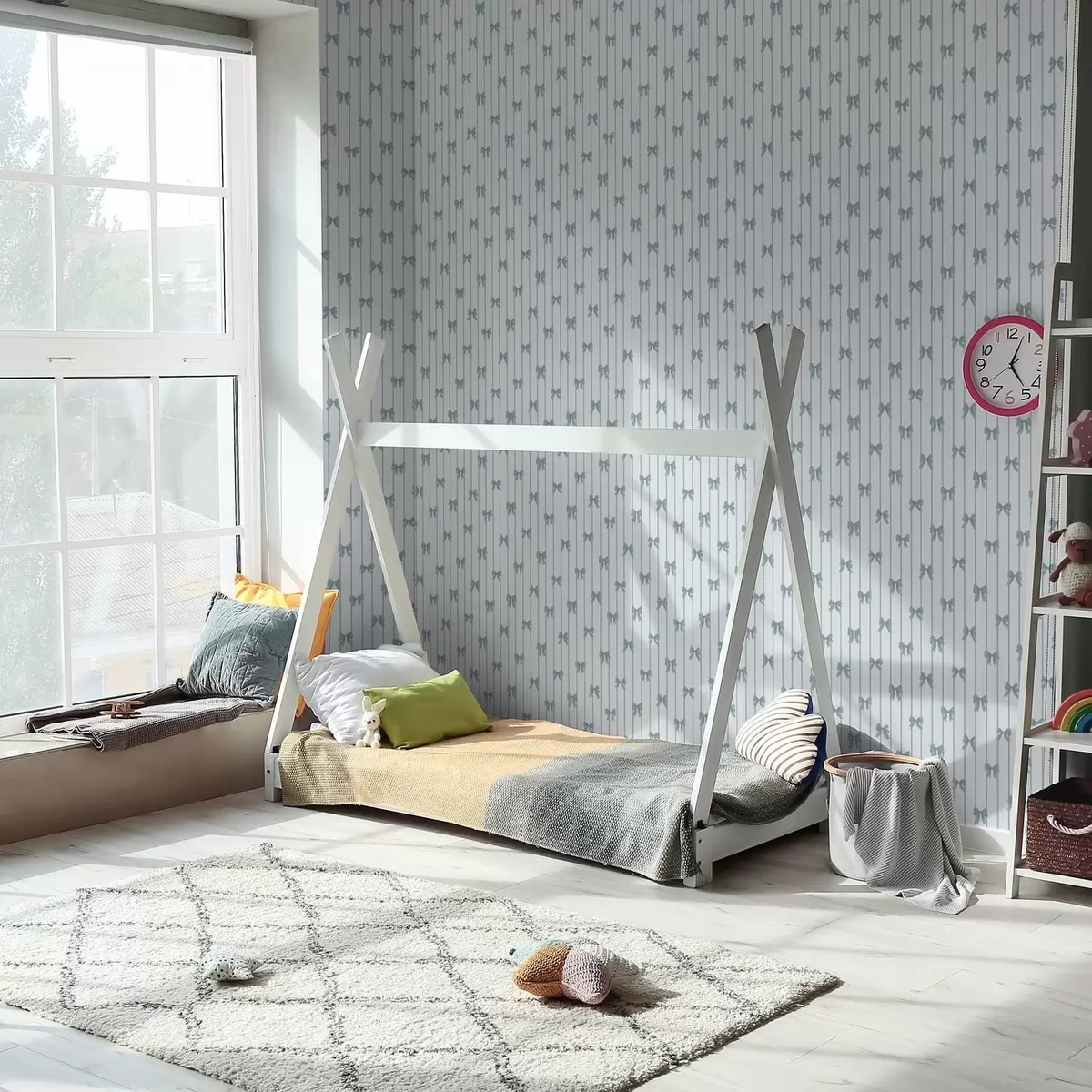 Tapeta Светло пругасти узорак са тракама и машнама бр. a01076v3