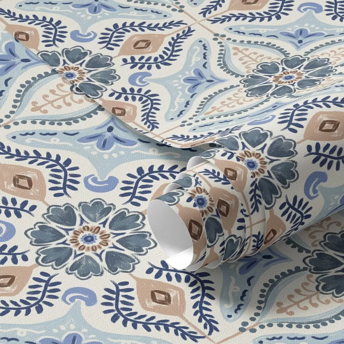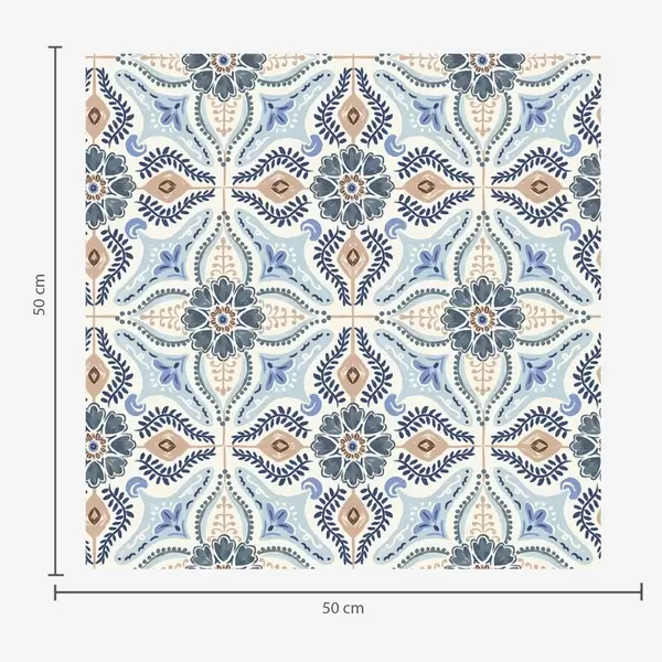 Tapeta Плаво-беж украс у стилу плочица осликан акварелом бр. a01085