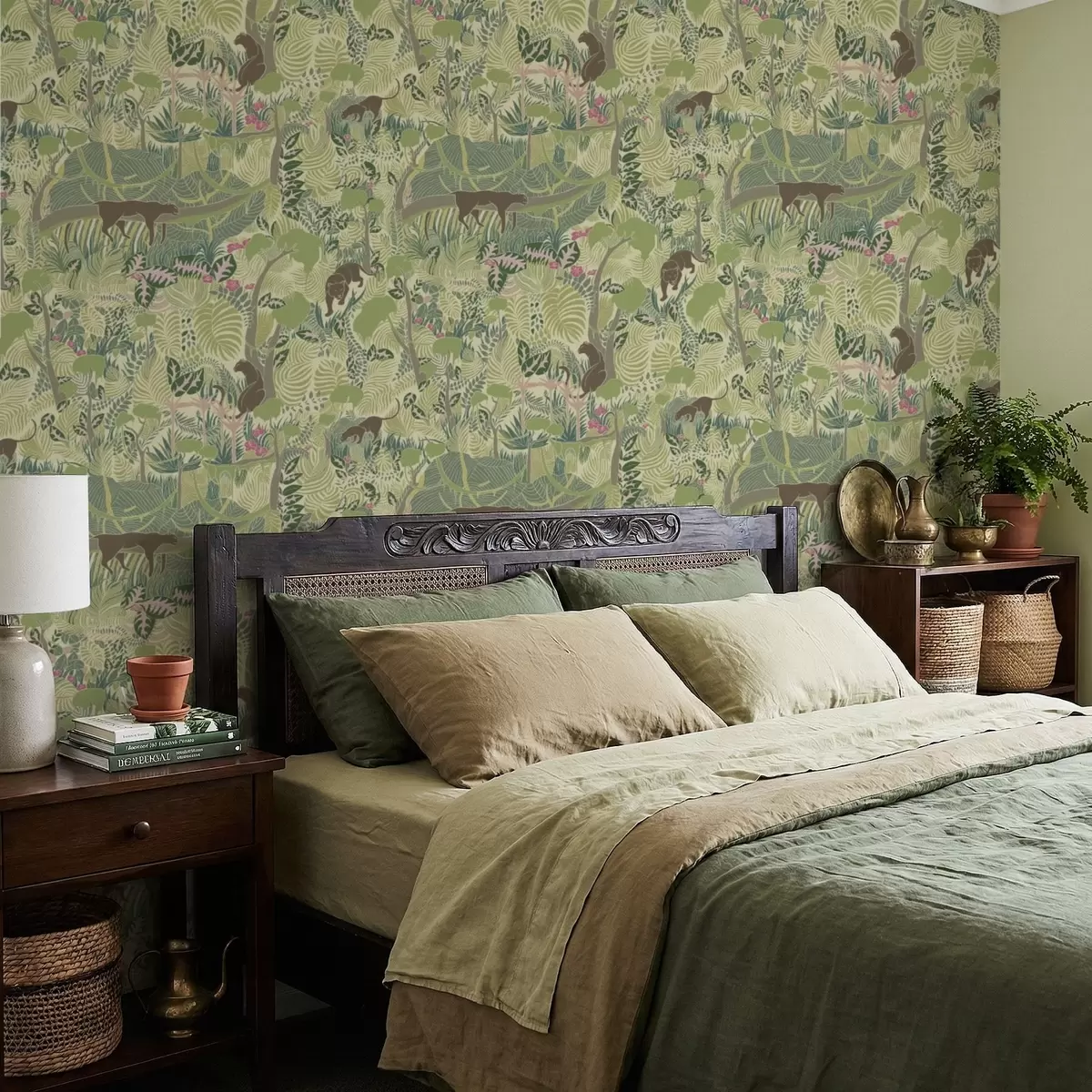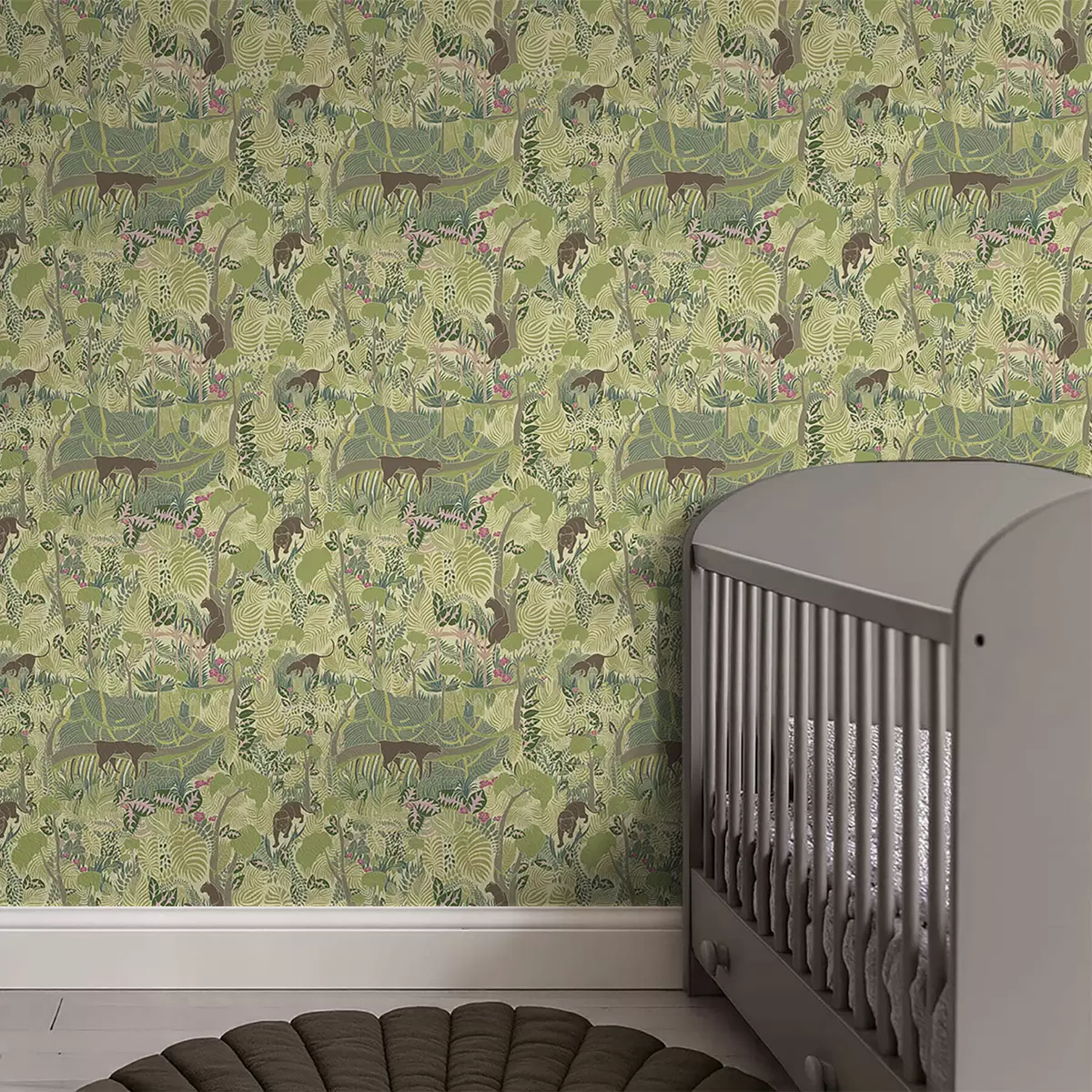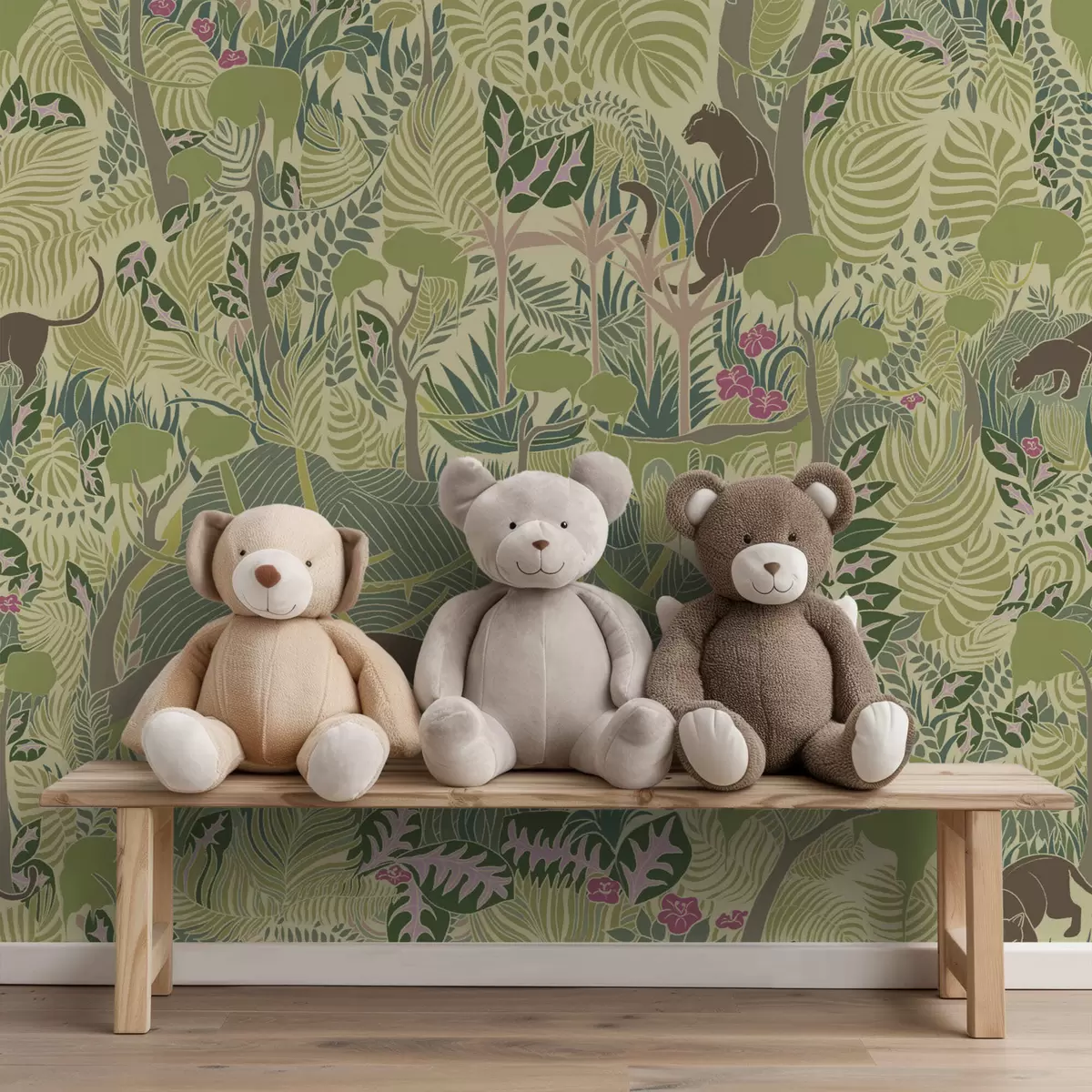 Tapeta Шумски пејзаж са животињама и густим лишћем бр. a01108