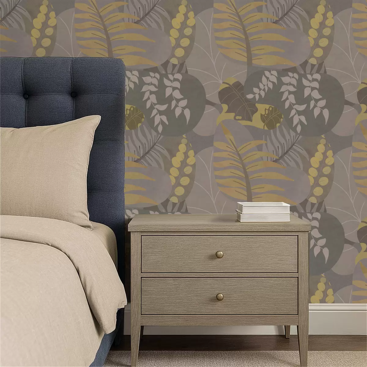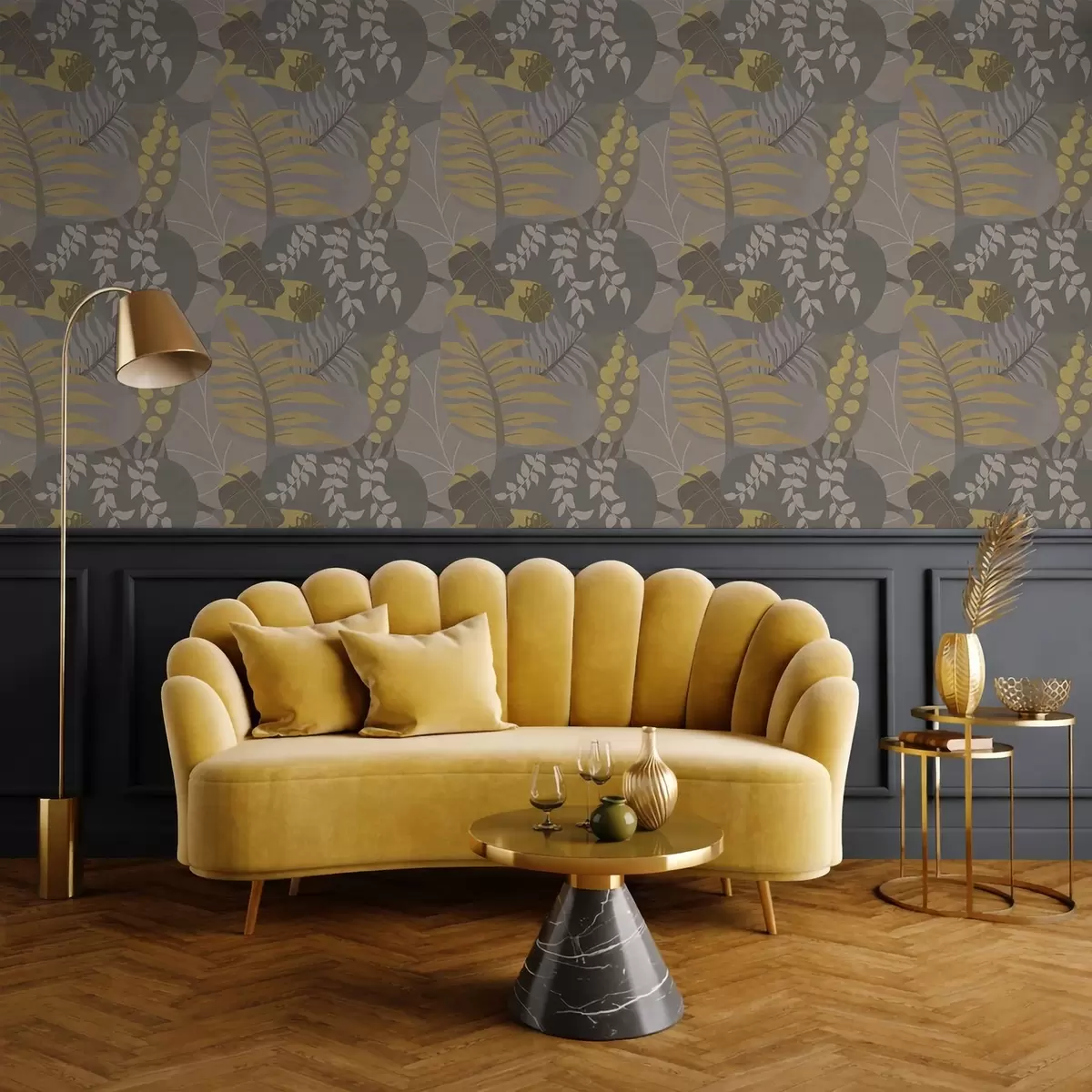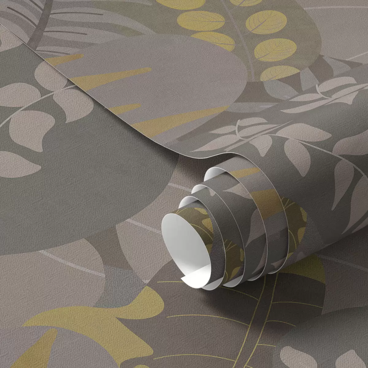Tapeta Апстрактни листови у сивим и жутим тоновима бр. a01112