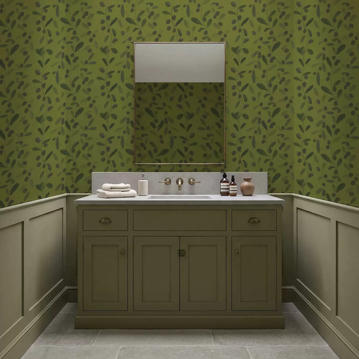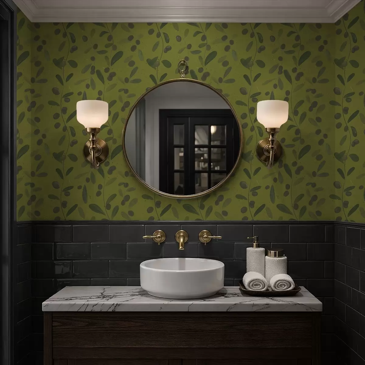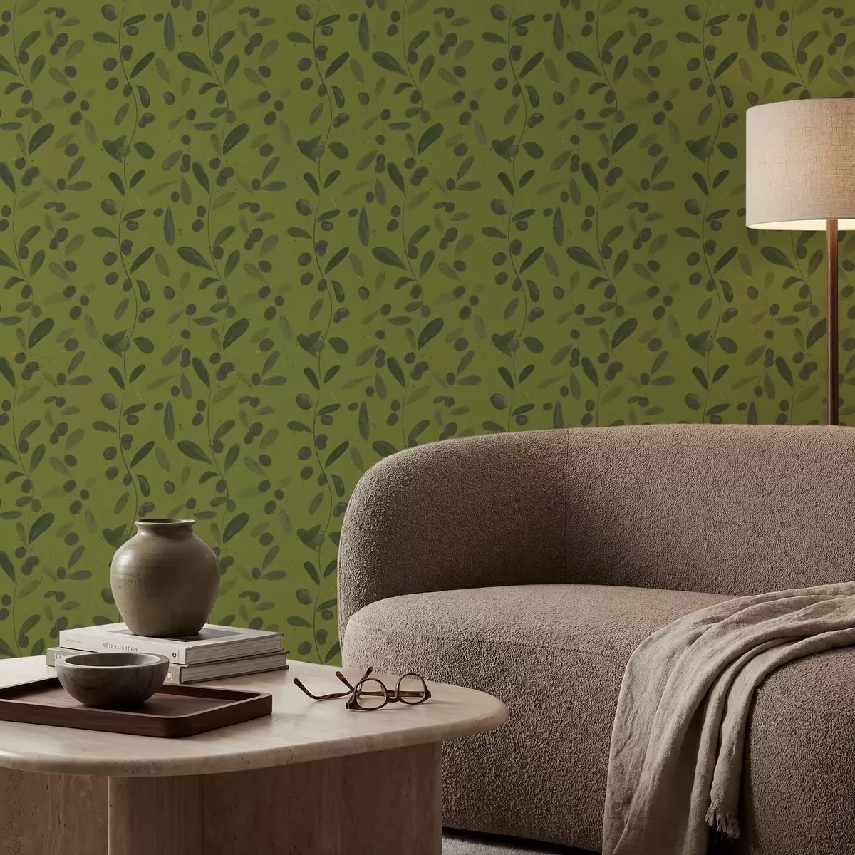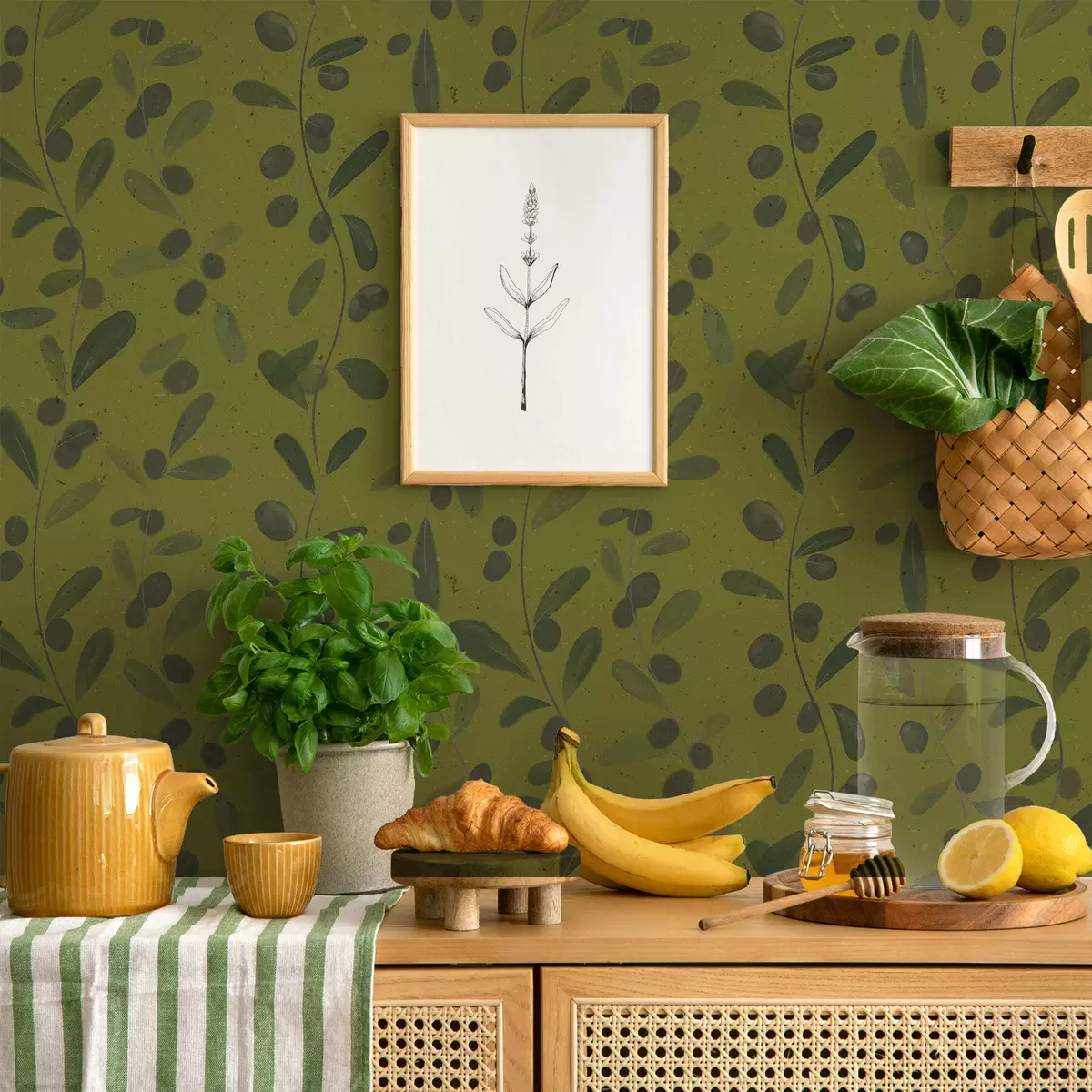 Tapeta Зелене гране са лишћем и бобицама на маслини бр. a01113