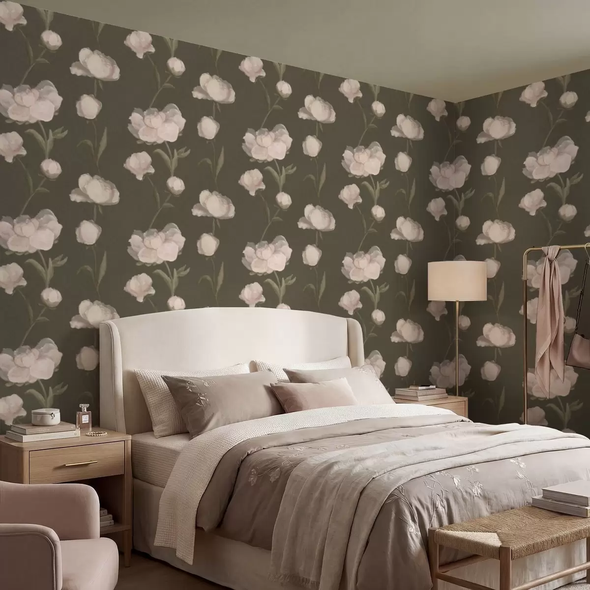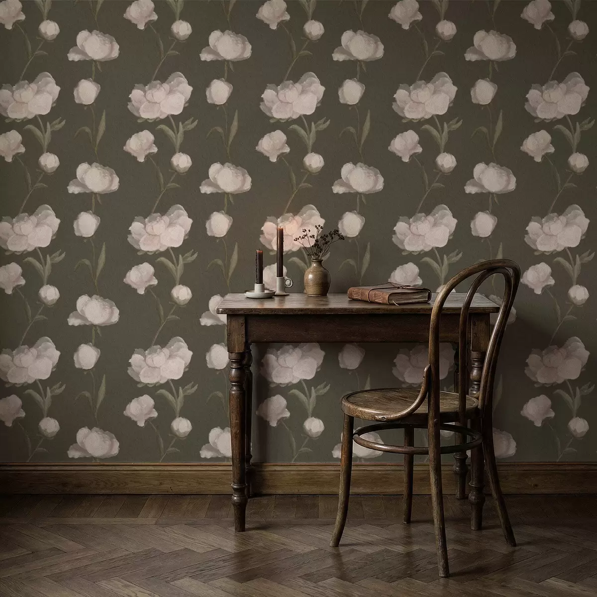 Tapeta Нежно ружичасти божури на тамној позадини бр. a01114v1