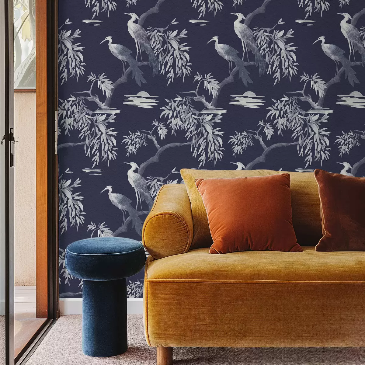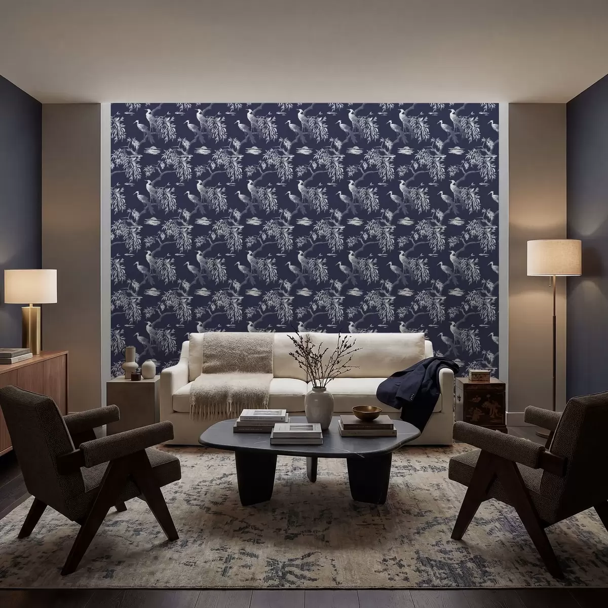 Tapeta Птице на грани на тамноплавој позадини бр. a01116v1