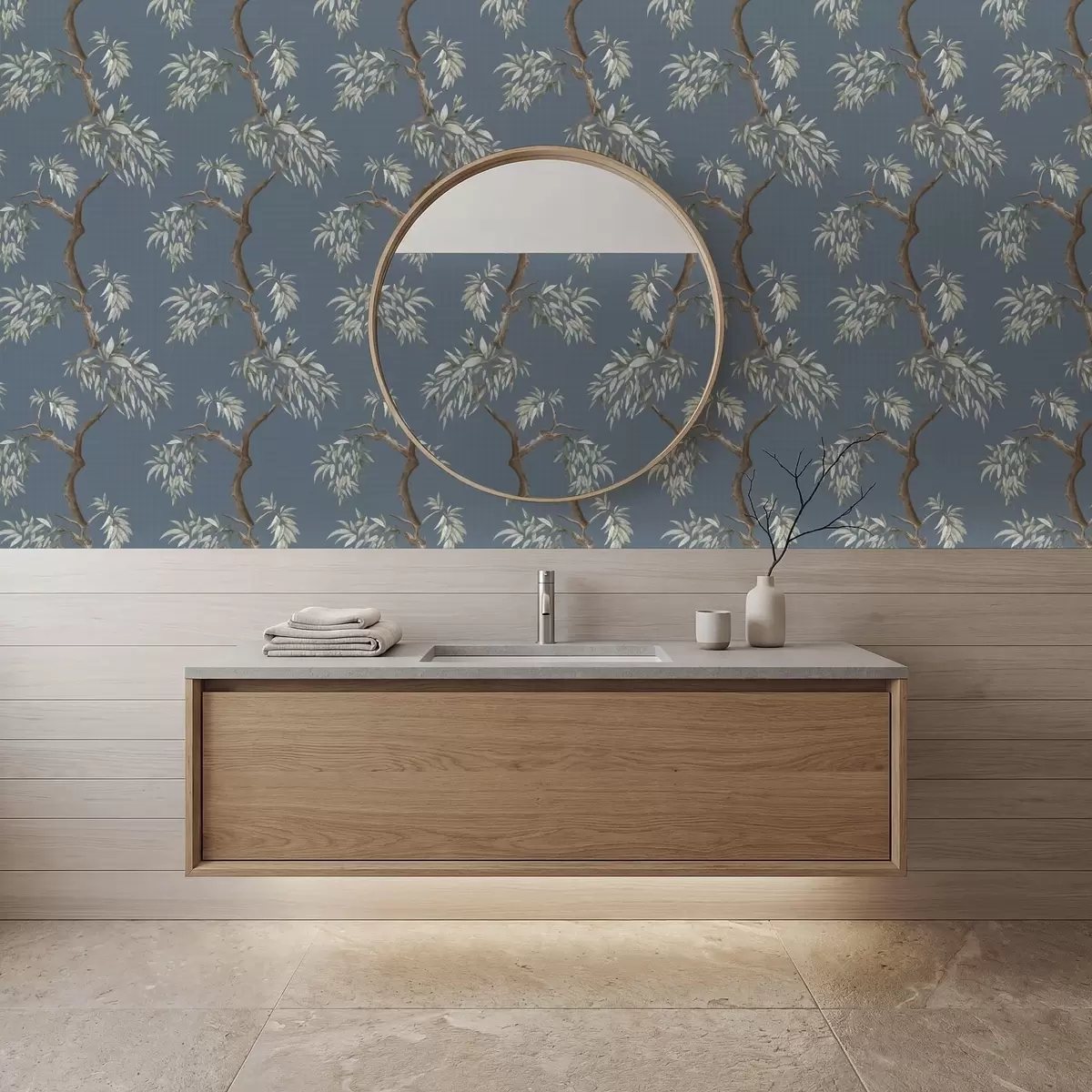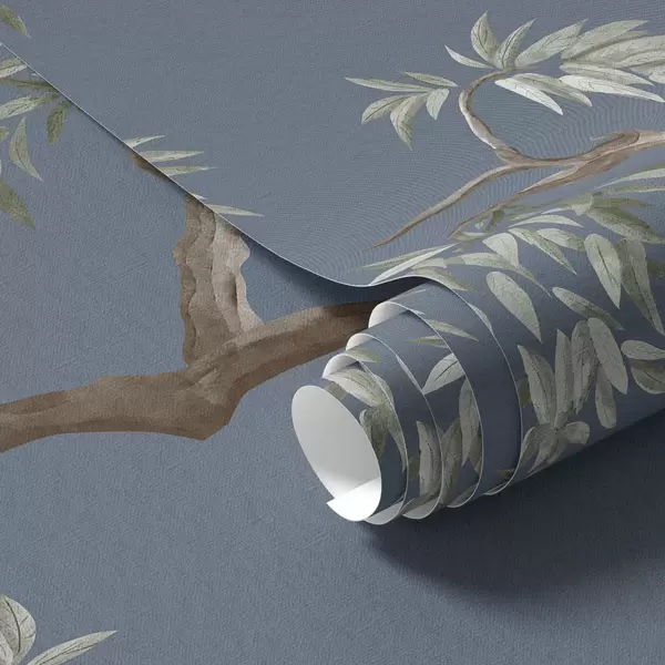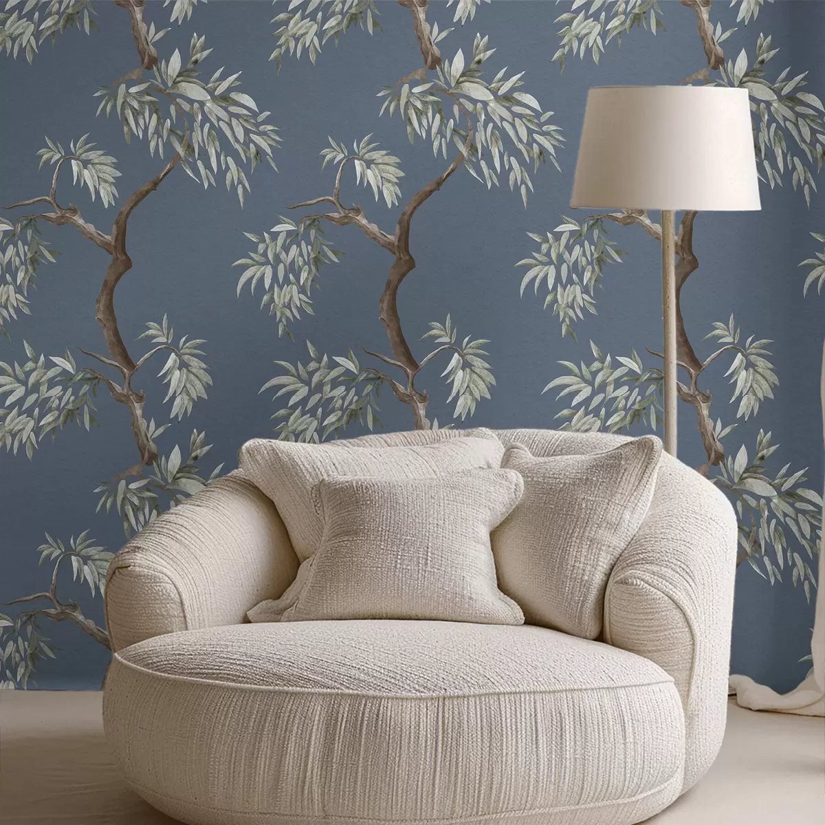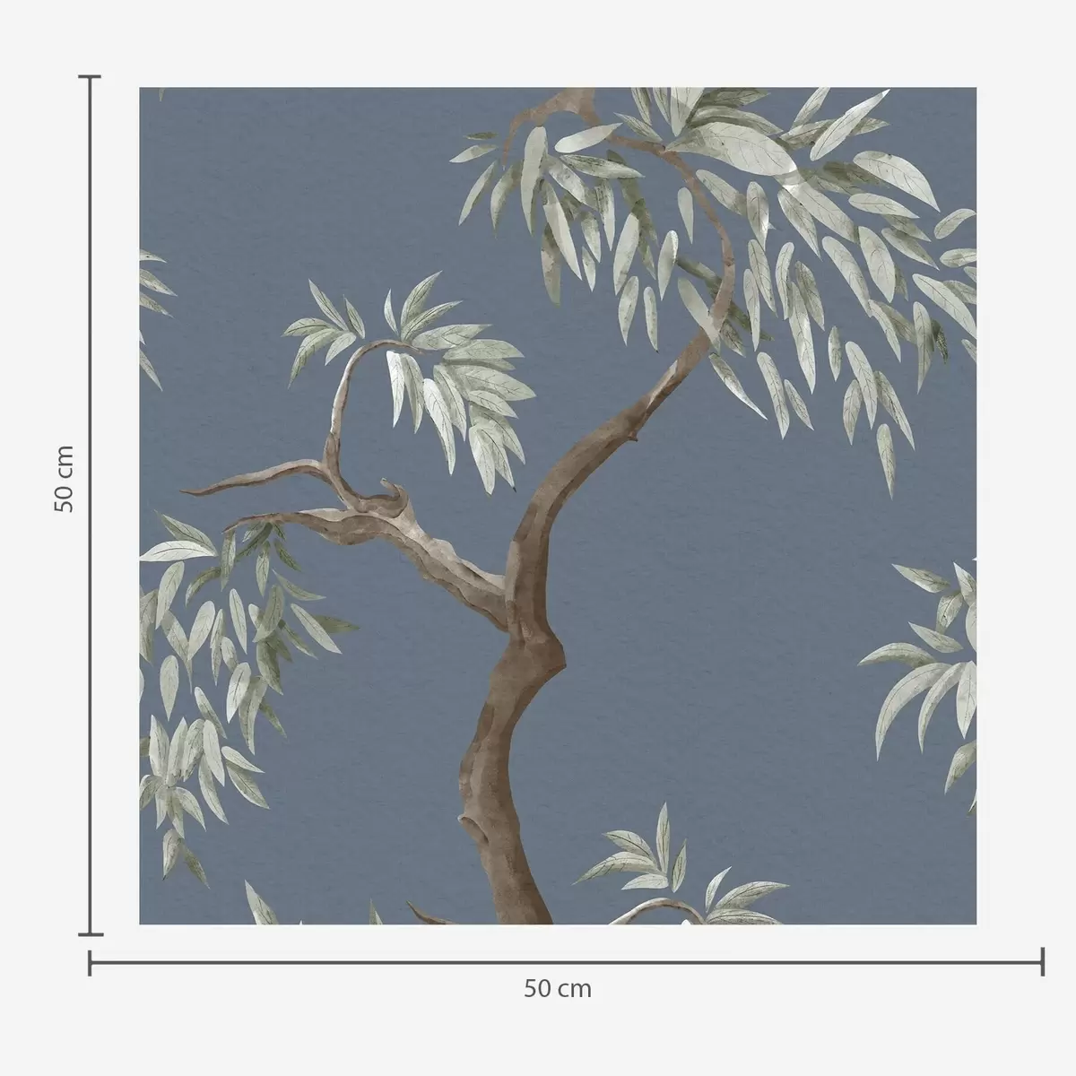 Tapeta Грана дрвета са лишћем на плавој позадини бр. a01117