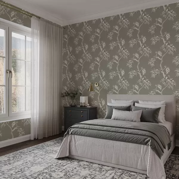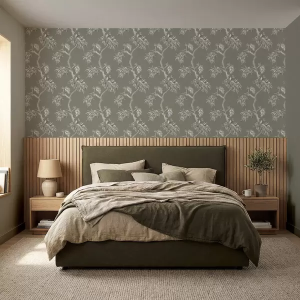 Tapeta Светла грана са лишћем на маслинастој позадини бр. a01117v1