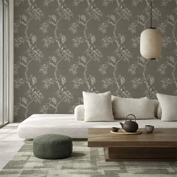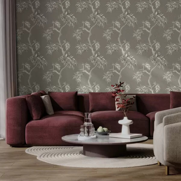 Tapeta Светла грана са лишћем на маслинастој позадини бр. a01117v1
