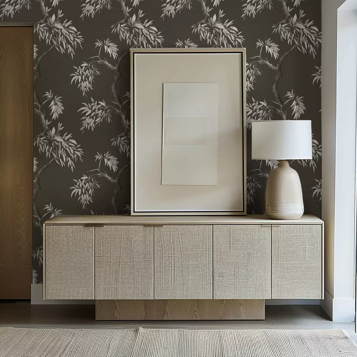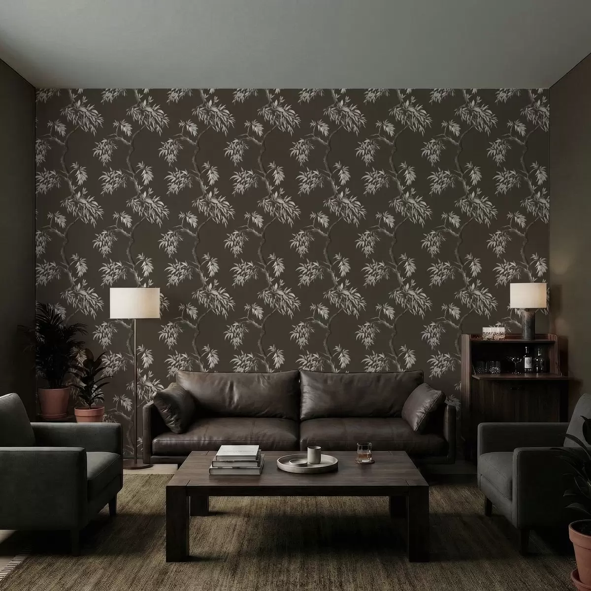Tapeta Монохроматска грана са лишћем на тамној позадини бр. a01117v2