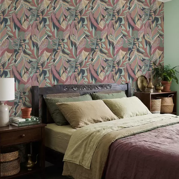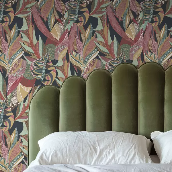 Tapeta Шарено лишће са шарама на тамној позадини бр. a01120